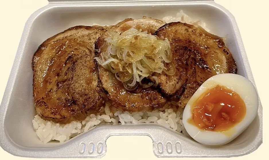ランチタイムを主とし、チャーシュー丼・牛すじ丼・カレー・アボカドチキン丼などを提供している。