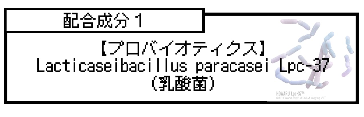 プロバイオティクス Lacticaseibacillus paracasei Lpc-37(乳酸菌)。ヨーグルトなどに含まれていることで有名な生きた乳酸菌をバランシードに含めました。生きた乳酸菌を生かしたままサプリに閉じ込めた画期的なサプリです。