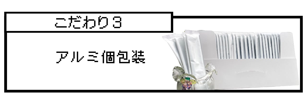 サプリと言えば錠剤のイメージがないでしょうか?とくに海外のサプリは成分はよくてもデカくて飲みにくいのが玉に瑕。また錠剤にするには一般的に添加物が使われます。健康のために添加物を摂取するのはいかがなものでしょうか。飲みやすく、余計なものは入れないサプリを目指しました。