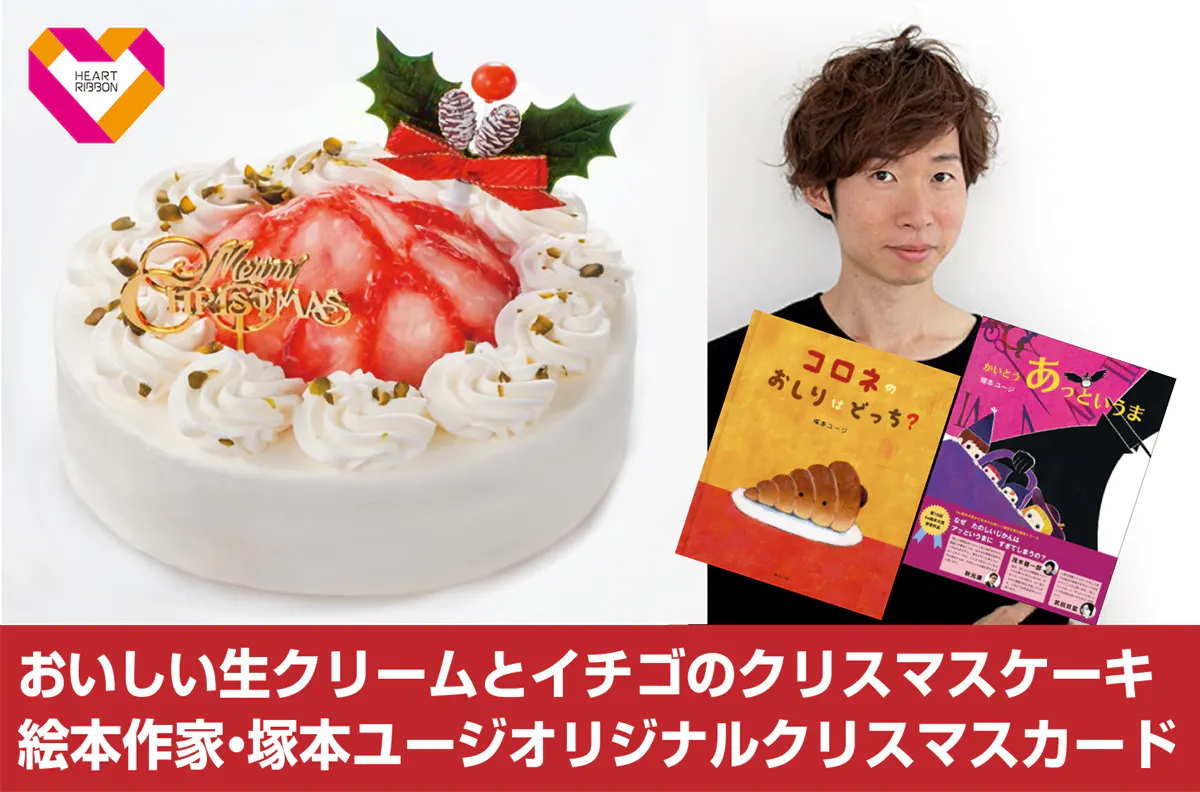 5号サイズ(直径15cm)の生クリームとイチゴのケーキです。(※写真のケーキをご用意する予定でおりますが、事情により異なる場合もございます)ケーキと一緒に絵本作家・塚本ユージ(第10回フジテレビKIDS be絵本大賞受賞、第8回絵本出版賞最優秀賞)のオリジナルクリスマスカードが贈られます。