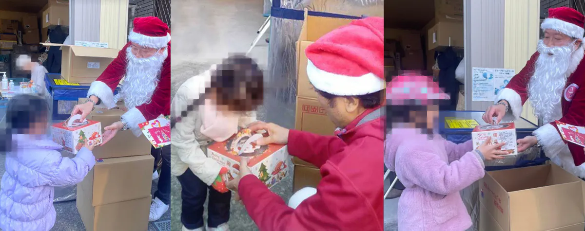 2025/01/21 23:112024年12月15日(日)、20日(金)、21日(土)、港区、渋谷区、世田谷区、目黒区、杉並区、荒川区、府中市、越谷市にて、ひとり親家庭等に、クリスマスケーキを配布させていただきました。また、都内及び近郊の児童養護施設にもクリスマスケーキを届けました。合計で1600個のクリスマスケーキを、無事に子どもたちに届けることができました。当日は、石田純一さん、魔裟斗さん、セイン・カミュさん、池谷幸雄さん、柿本賢治さん、大野均さん、和泉妃夏さん、南美沙さん、ウルフ・アロンさん、矢沢心さんがサンタクロースになってクリスマスケーキを配布いたしました。当日は、TBSテレビより取材を受け、夕方のニュースで放送されました。https://newsdig.tbs.co.jp/articles/-/1632022多くの皆さんのご支援ご協力により、クリスマスケーキを子どもたちに届けました。本当にありがとうございました。心より感謝申し上げます。 もっと見る