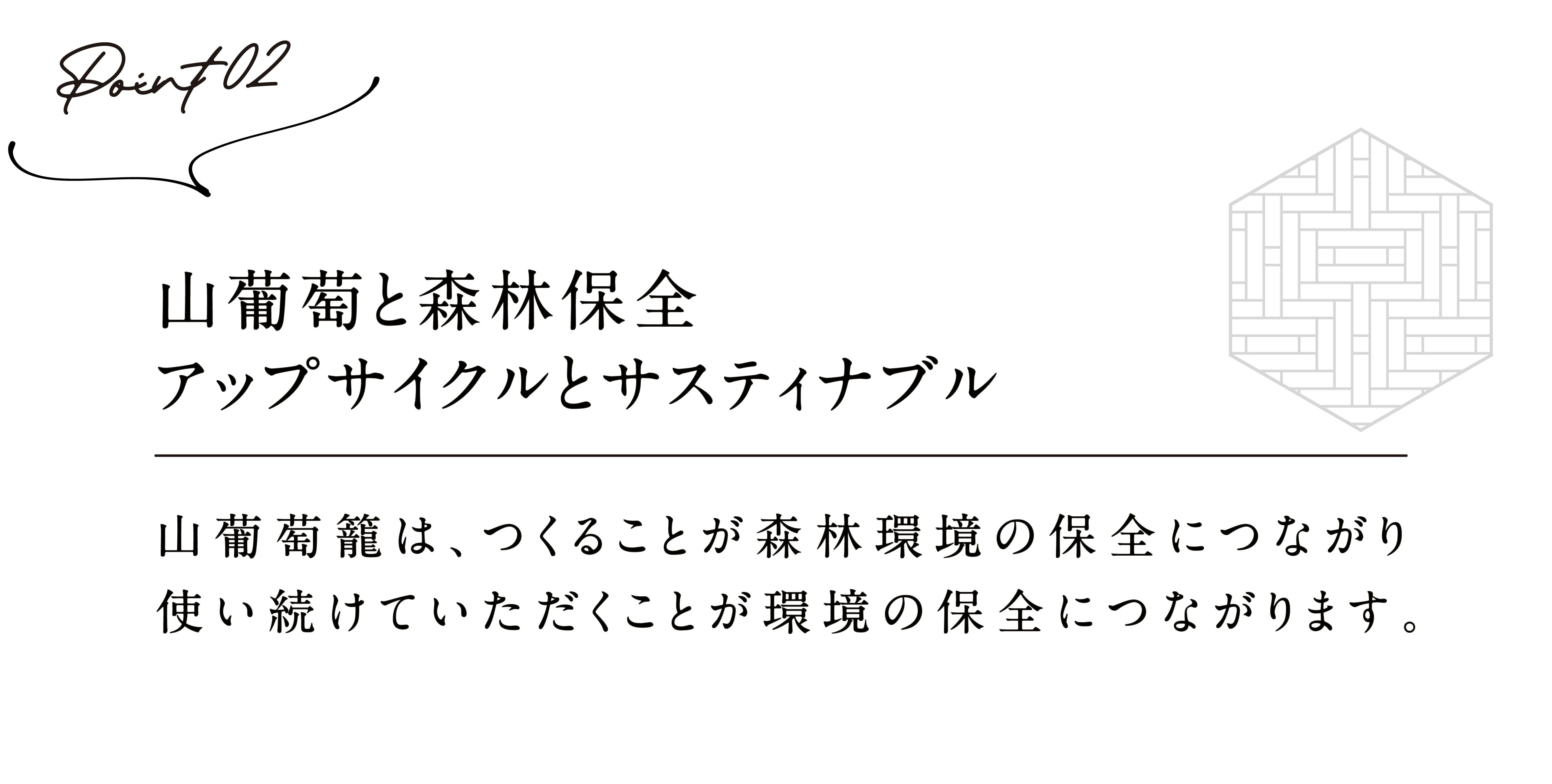 山葡萄籠の伝統的な編み技法を活かしたカゴ製品や、現代のニーズに応じた編み模様を用いた革新的な製品、異なる素材との組み合わせで表現する独創的な製品を生み出しながら、山葡萄籠の文化を広く世界的に発信。