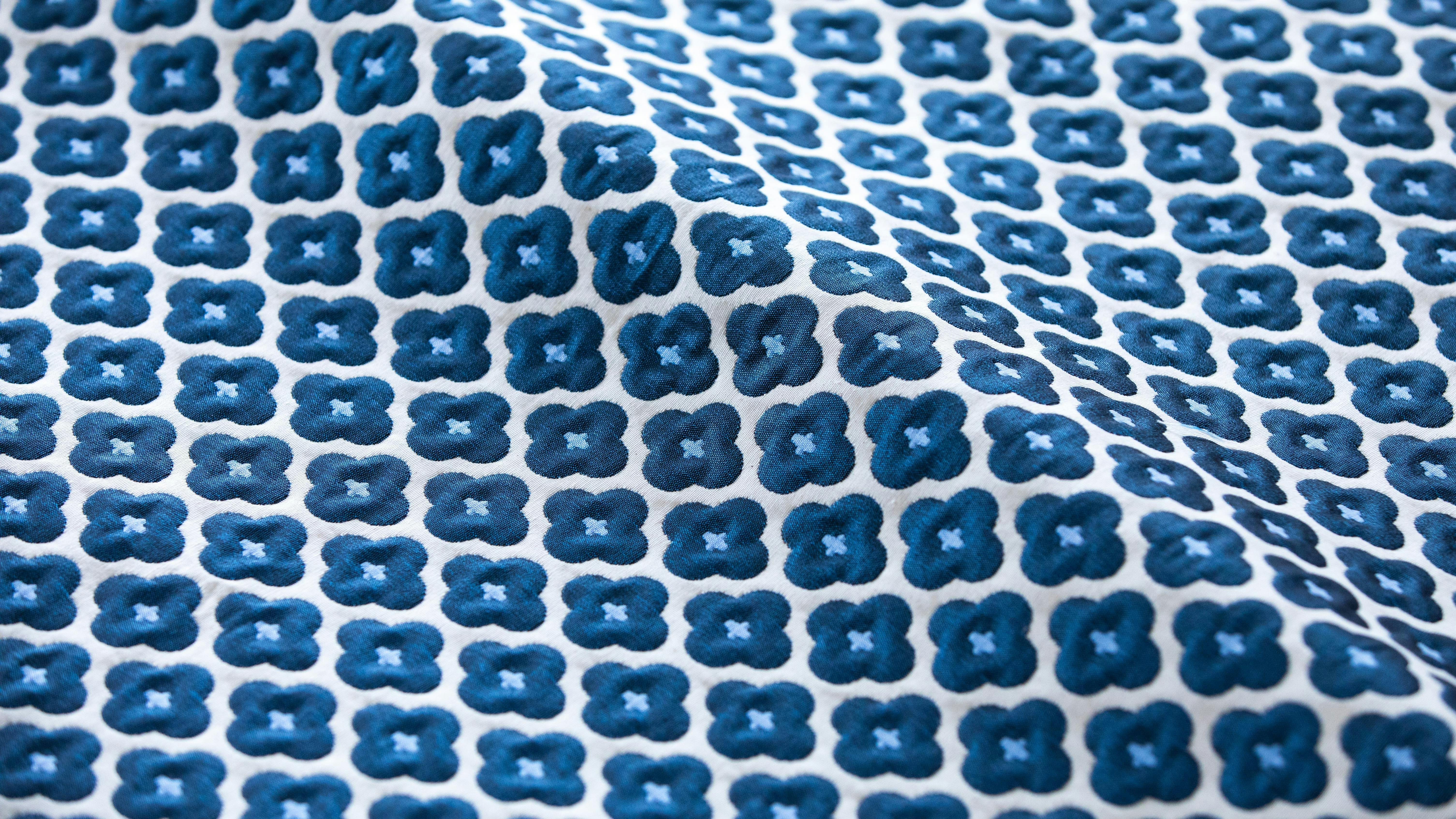籠の開口部を巾着仕様にすることでプライバシーを守るとともに、お使いいただきやすいデザインとなるようにしました。生地にはフランスの老舗ブランドのTHEVENON(テヴェノン)社の人気生地、BIGBANGを採用。表情豊かな織り表現と絶妙な色の組み合わせがフランスらしい上品さとモダンな印象を併せ持ち、シンプルなデザインの中に魅力が詰まったとても良い生地です。
