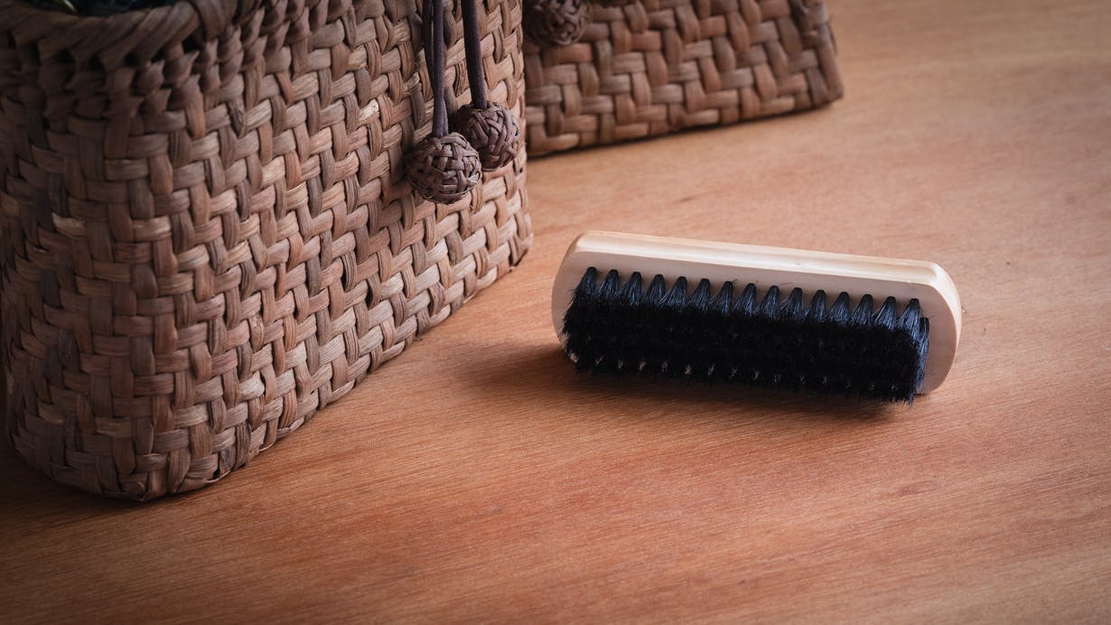 山葡萄籠の魅力の一つ、経年変化を楽しんでいただけるように全ての製品にお手入れ用の専用豚毛ブラシが付属します。