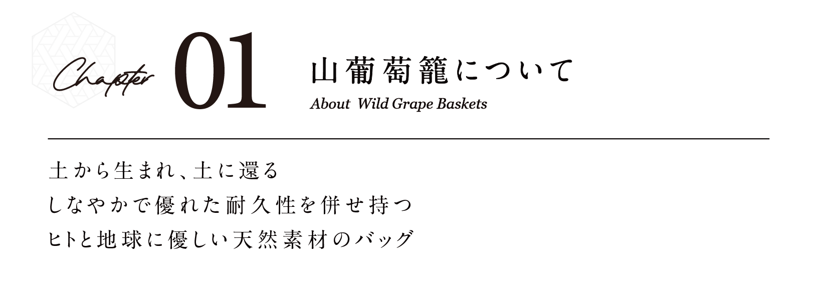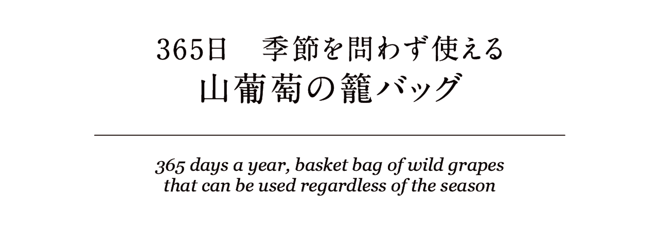 職人によって丁寧に作られる山葡萄の籠バッグは耐久性が高く、使うほどに柔軟性を増して深味のある色と艶を纏いながら、自分だけのモノへと育ちます。