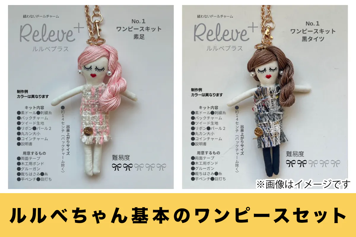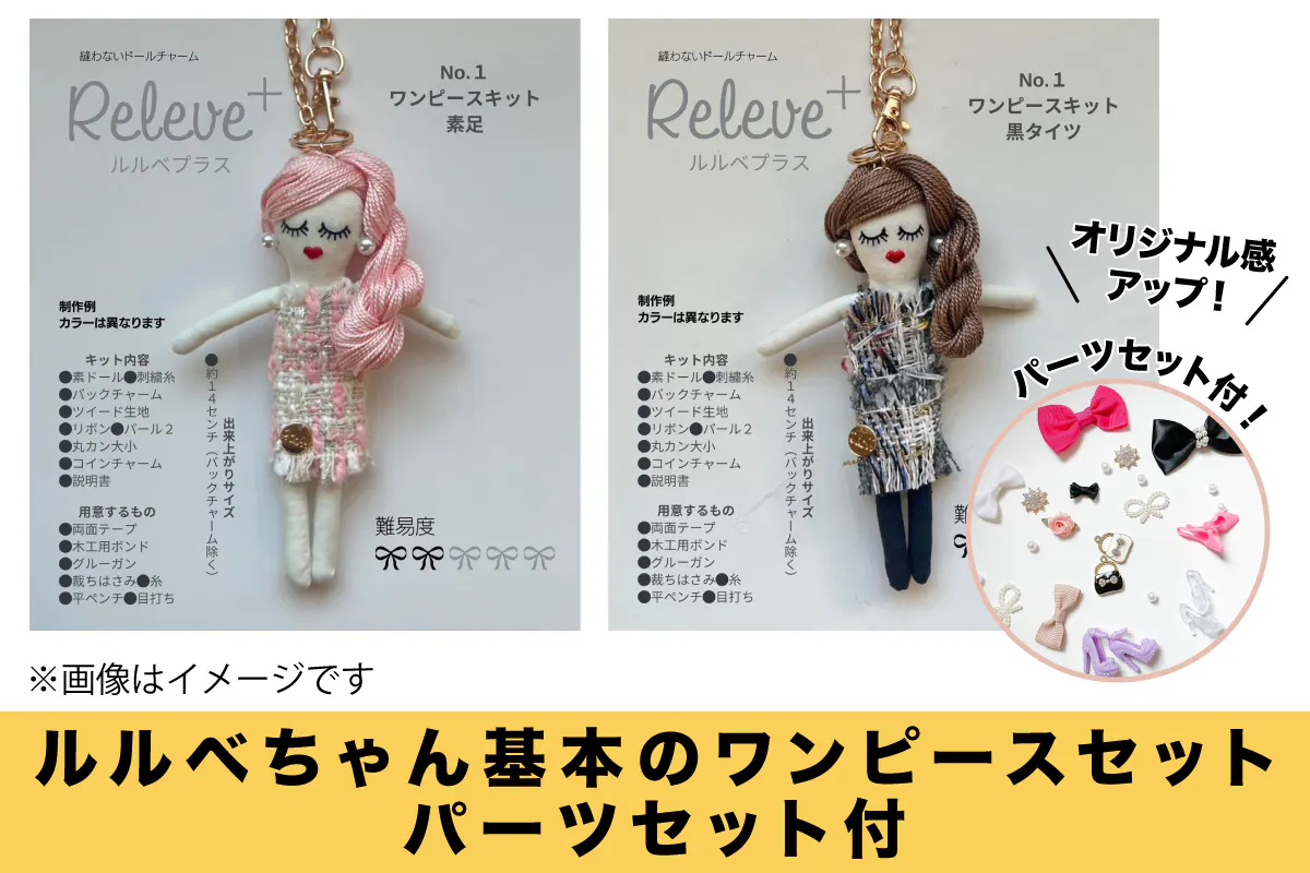 「ルルベちゃん」は、針も糸も使わず、どなたでも気軽に作れるドールチャーム。