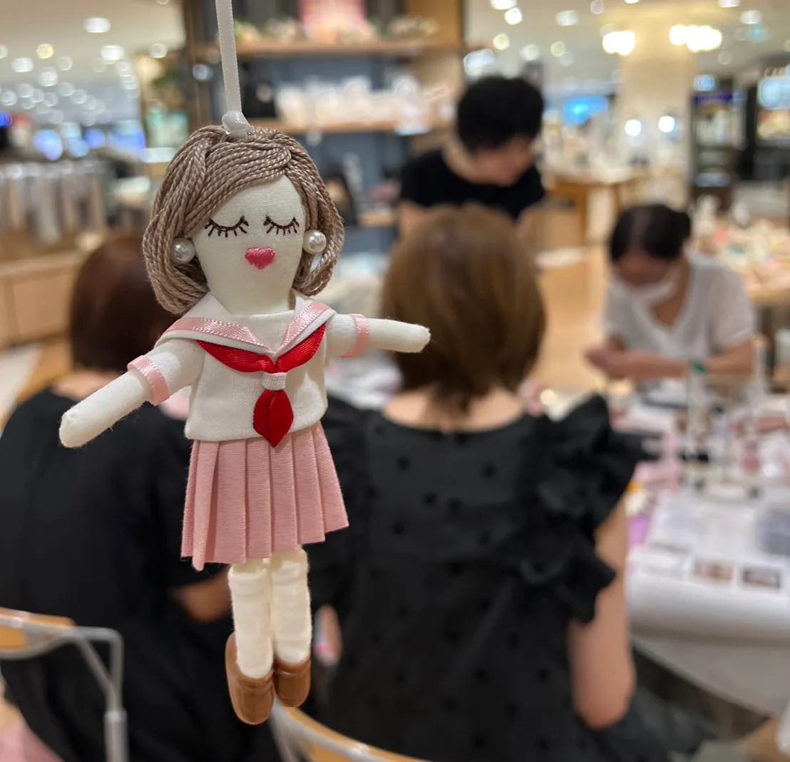 針も糸を使わずに作れるオリジナルのドールチャーム「ルルベちゃん」は、そのかわいさと手軽さから、全国で大人気。