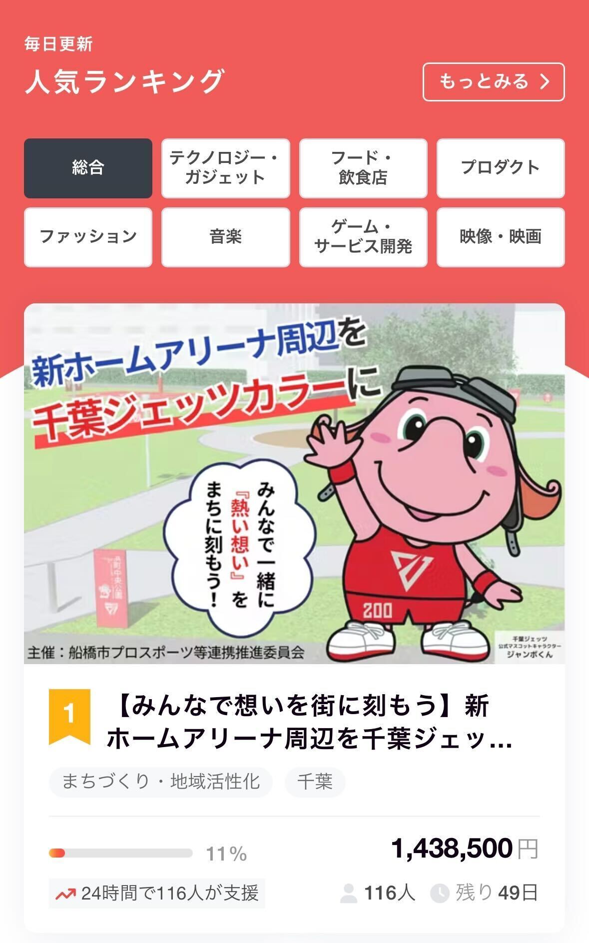 さて、プロジェクト初日である2月1日(土)、全プロジェクトの日別人気ランキングで見事1位に輝きました‼