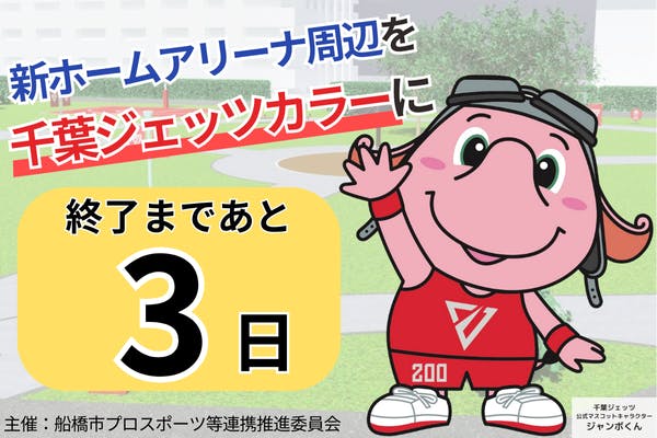 平素より本プロジェクトにご支援を賜り、誠にありがとうございます。船橋市プロスポーツ等連携推進委員会です。さて、2月1日より開始しました本プロジェクトも、支援の募集終了まで残り2日となりました。現在、目標達成まで残り200万円に迫っています。もう少しのご支援で、LaLa arena TOKYO-BAY隣の浜町中央公園を千葉ジェッツカラーに染められます。本委員会としては、絶対に目標を達成したいと思っています!既にご支援いただいた方もそうでない方も、何卒、ご支援を賜りますようお願い申し上げます。一緒に夢を実現させましょう。また、本プロジェクトは、皆様の情報発信によるご協力が重要となってまいります。下記にある船橋市公式Xの投稿をリポストするなど、SNS等で拡散していただきますよう併せてよろしくお願い申し上げます。船橋市公式Xの投稿▼https://x.com/Funabashi_city/status/1902993588600164441