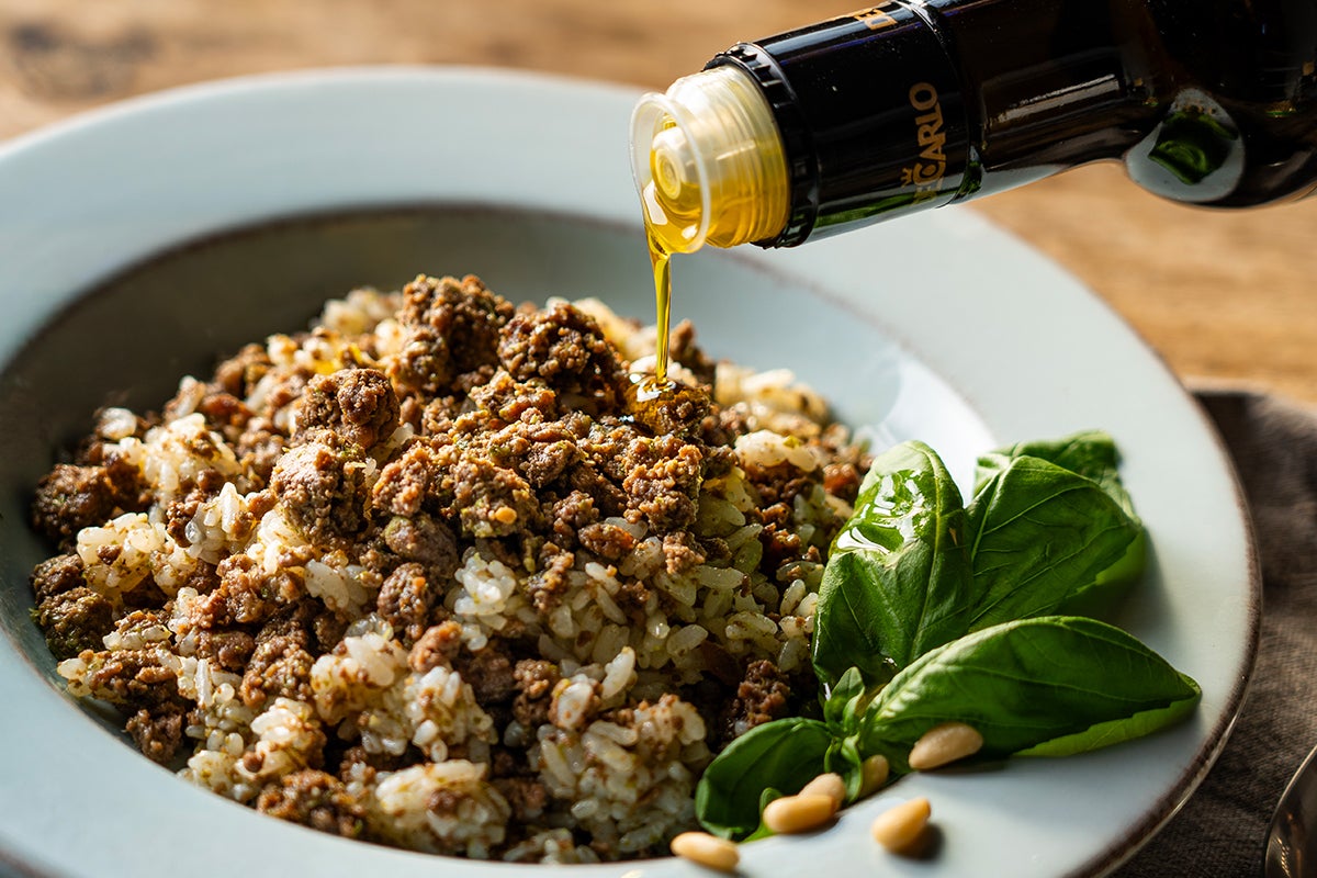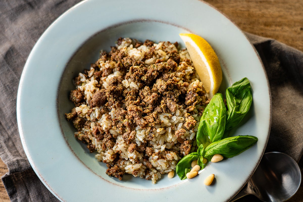 4.2種のチーズとバジルの鹿肉ジェノベライス