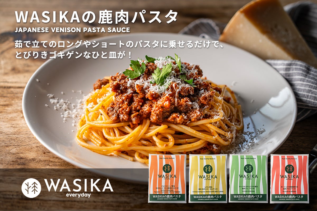 日々の暮らしに寄り添う「WASIKA everyday」の「WASIKAの鹿肉パスタ」は、茹で立てのロングやショートのパスタに乗せるだけで、とびきりゴキゲンなひと皿が!成人が一日に推奨される鉄分摂取量を商品1食分で手軽に補うことができます。WASIAKの鹿肉を身近に感じていただければ幸いです。
