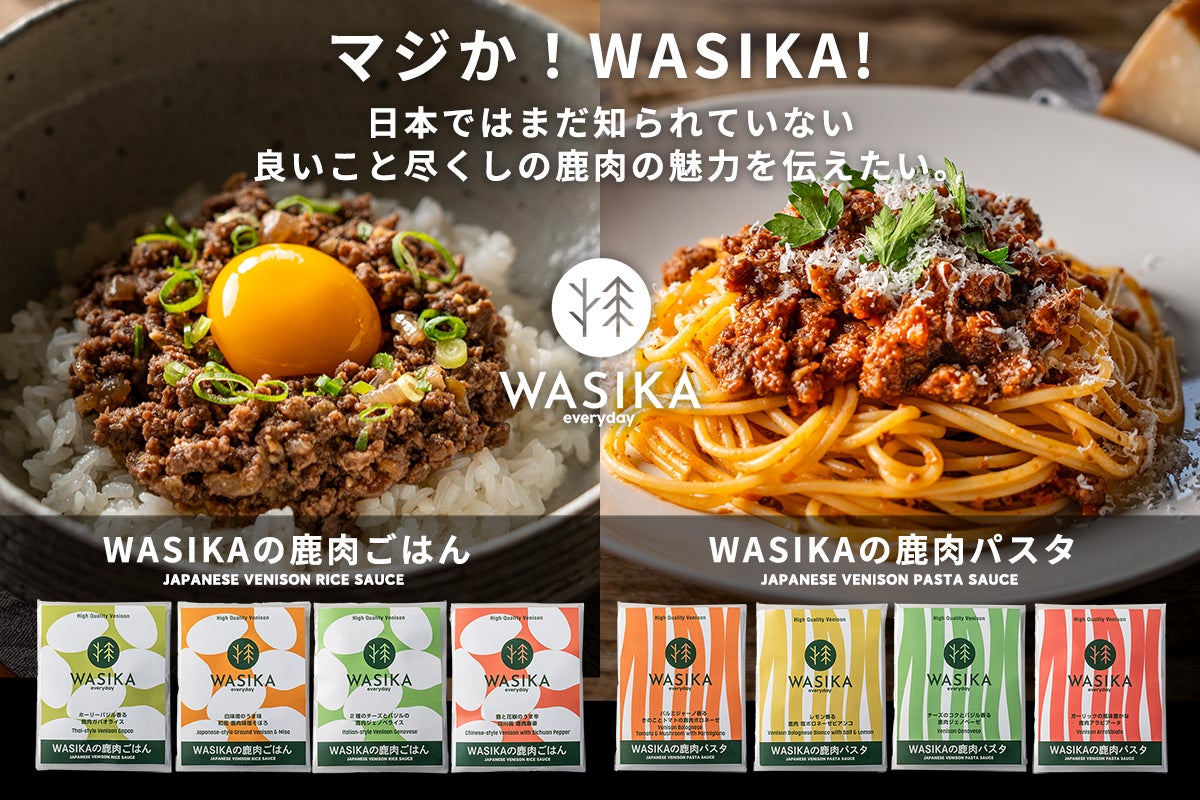 日常の食卓にWASIKAの鹿肉がある暮らしをテーマにした「WASIKA everyday 」シリーズは、「ごはん」と「パスタ」2つの展開。世界各国のお馴染みの料理の味付けで、鹿肉ならではの“快活感”が感じられるユニークな食感やうま味、後味、そして可能性を引き出しました。良いこと尽くしのWASIKA(和鹿肉)。 おいしい、高栄養価、安心、ヘルシー、カンタン、エシカル。炊き立てのごはんや、茹で立てのパスタにかけるだけ。手軽においしくお召し上がりいただけます。そしてWASIKAを食べると日本の森が元気になる。良いこと尽くしの和鹿肉を、身近に感じていただければ幸いです。