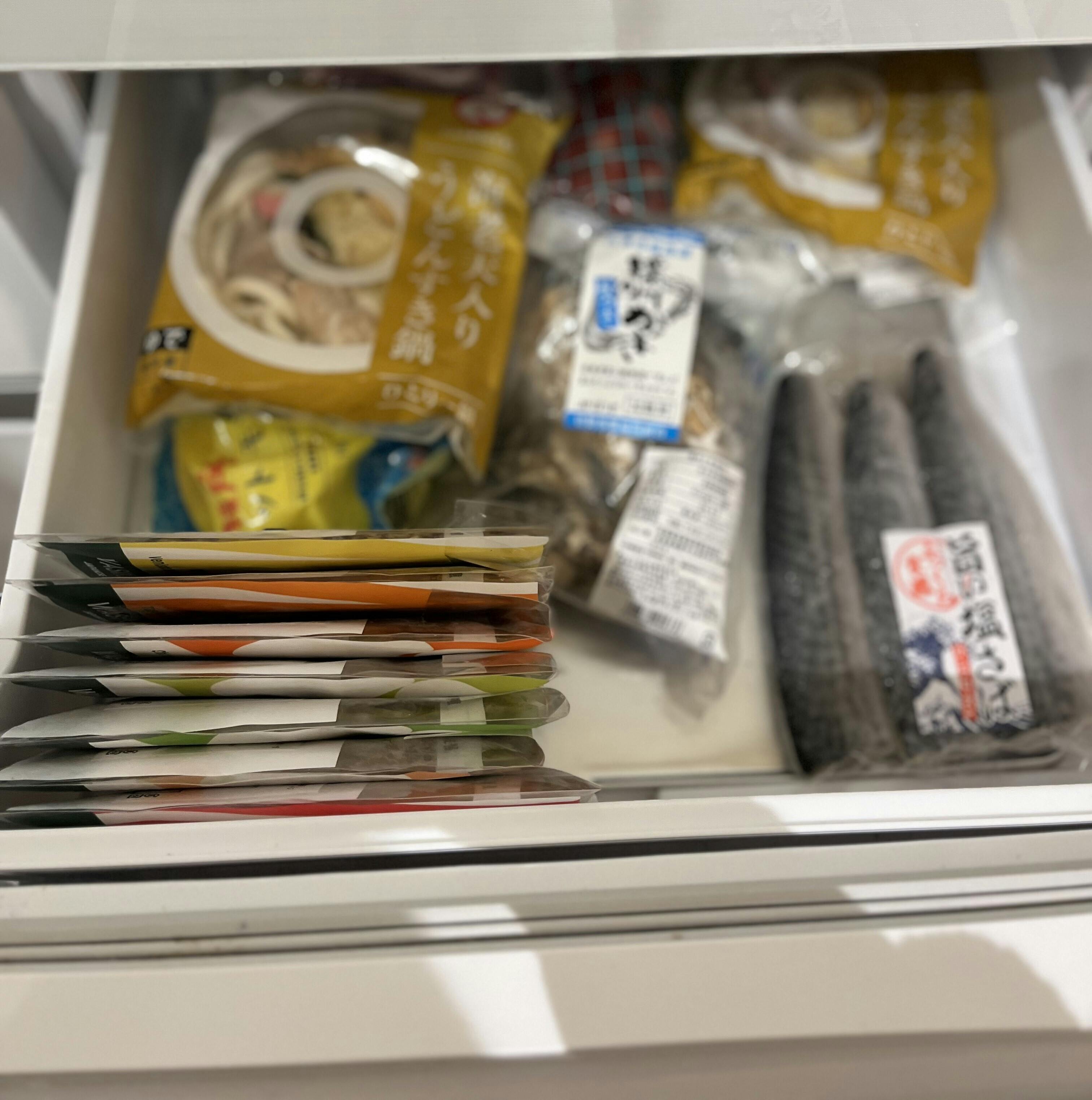 商品は冷蔵庫の冷凍スペースにこんな感じで収まります。↑