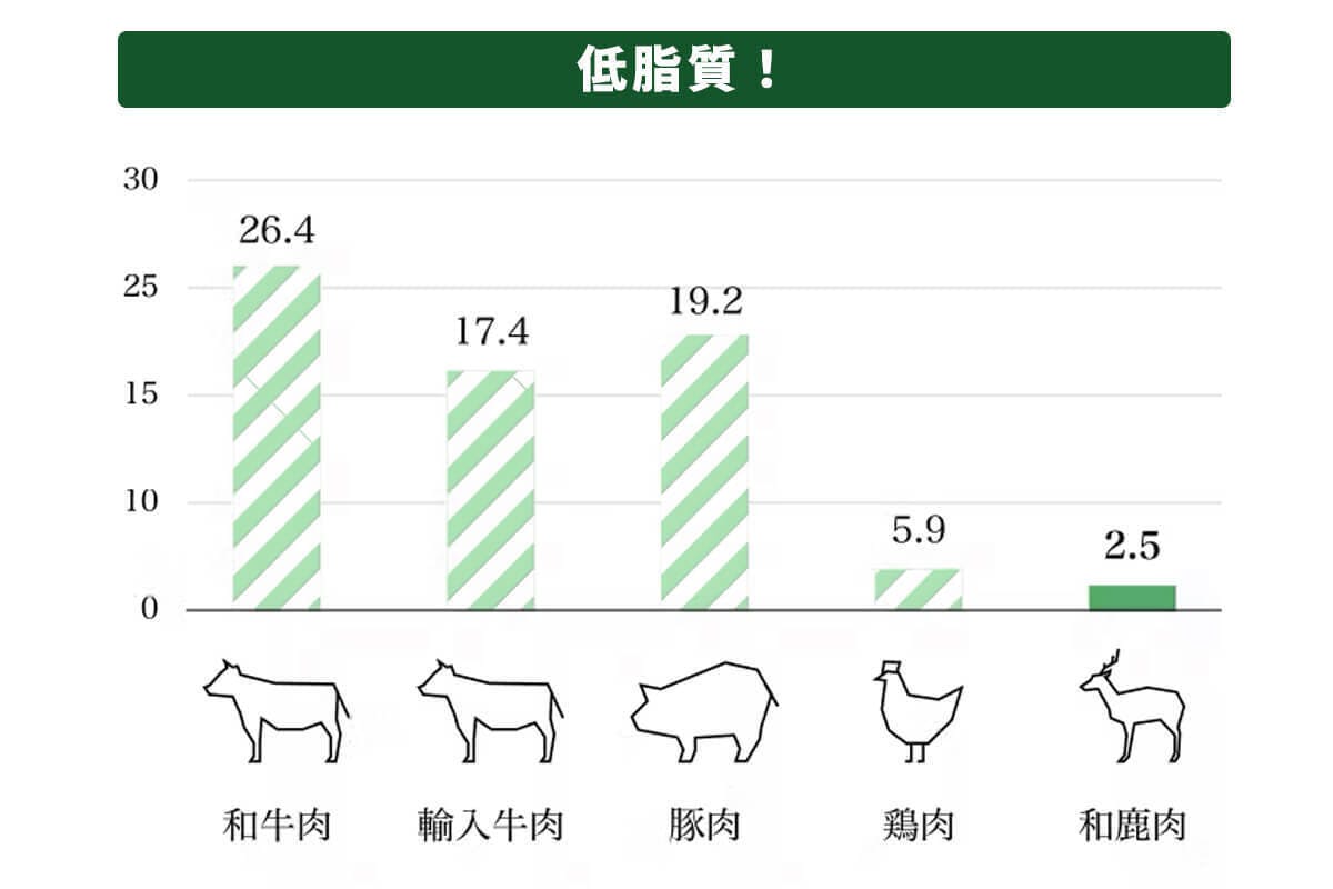 鹿肉は鶏の胸肉より低脂質、高タンパク質です。体を鍛えておられる方のタンパク質補給にも最適といえます!鶏肉+ミネラルサプリメントよりも体にやさしく、おいしく必要な栄養補給ができます。