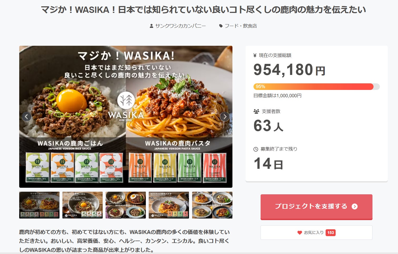 本日までに目標金額の95%を達成することができました。