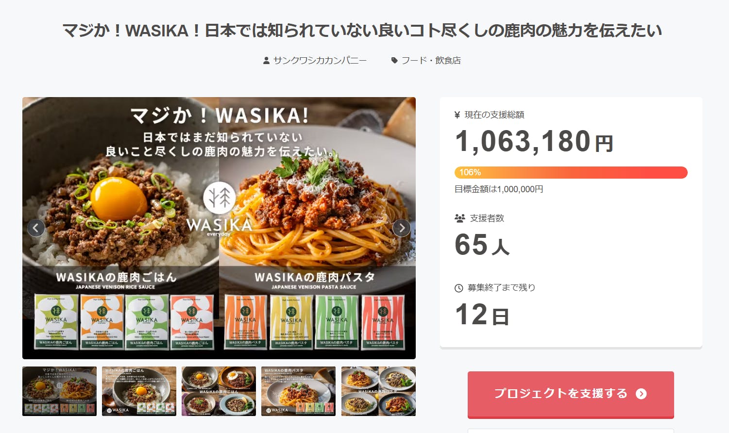 おいしさ、高栄養素、安心、ヘルシー、カンタン、良いコト尽くしの「WASIKAの鹿肉」を少しお得な本プロジェクトから是非お試しください!