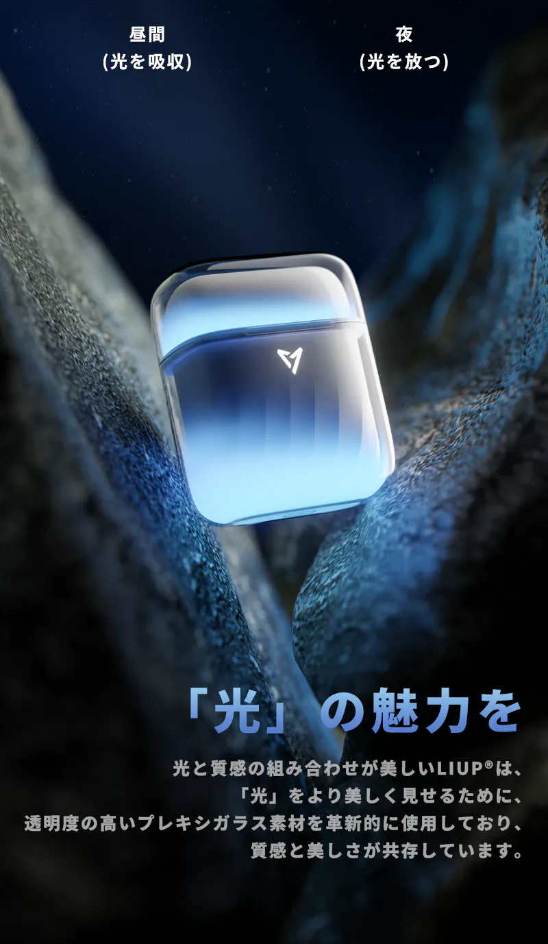 私たちは音楽の楽しみ方を一新する革新的なワイヤレスイヤホンLUMIONS EARPODSを開発しました。砂時計のように美しく流れる光が、あなたの音楽体験を視覚的にも豊かにします。