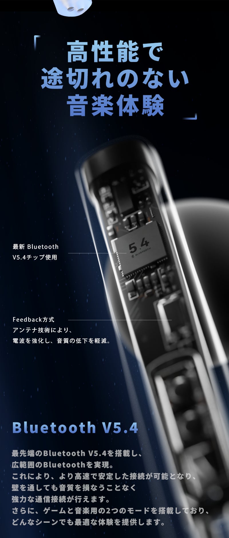 - 安定した接続で、途切れることのない音楽再生を保証