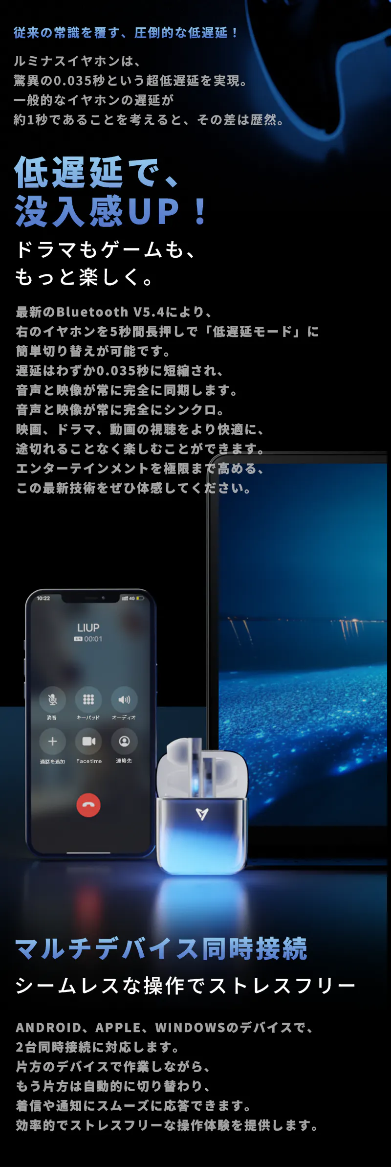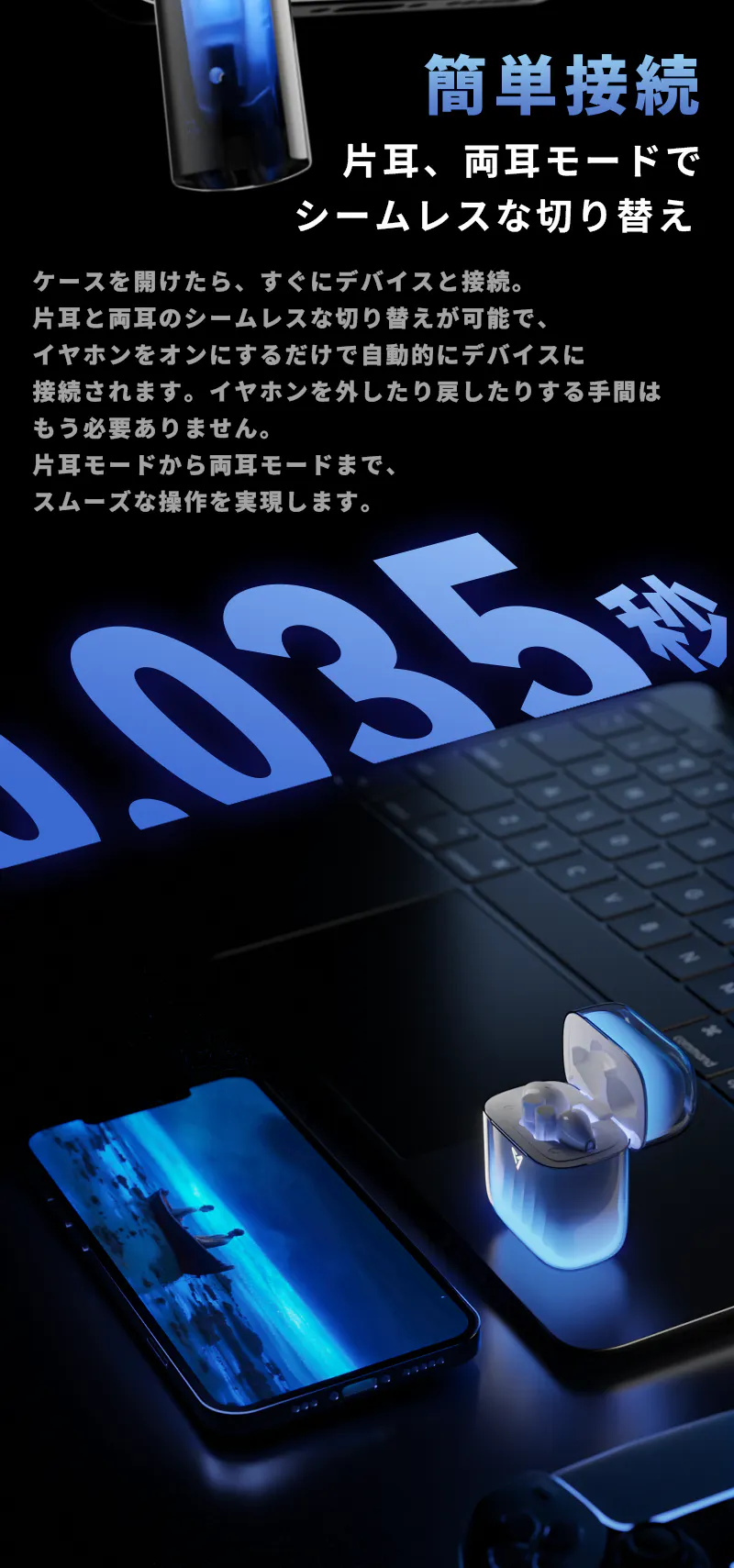 - 低遅延接続で、ゲームや動画視聴時も音ズレなし