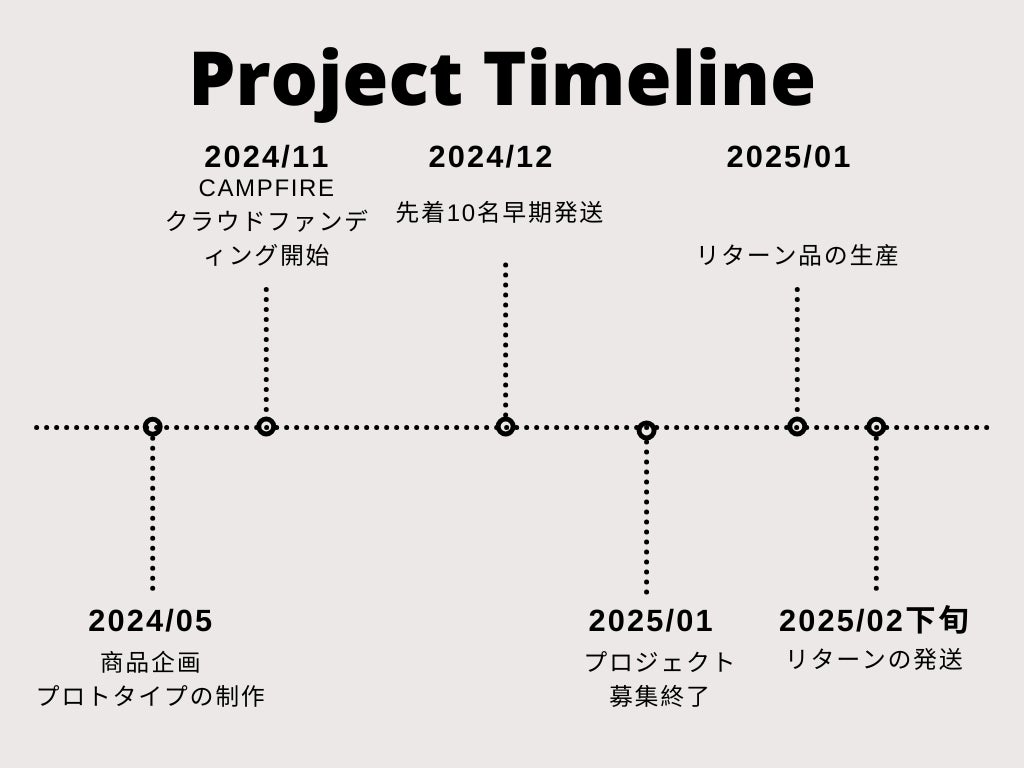 All or Nothing形式を採用しております。目標金額に達成した場合のみ、プロジェクトが成立、実行されます。支援者の皆様が支援の申し込みをしても即時に決済はされず、目標達成した時点で初めて決済がなされます。もしも達成しなかった場合は、支援者様に出資金が全額返金されます。このプロジェクトで取り扱うリターン品はOEM生産です。