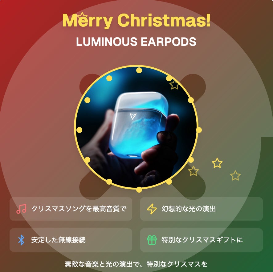 このクリスマスシーズンが、皆様にとって心温まるひとときとなりますように。そして、LUMINOUS EARPODSが皆様の新しい年に輝きを添えられることを願っています。