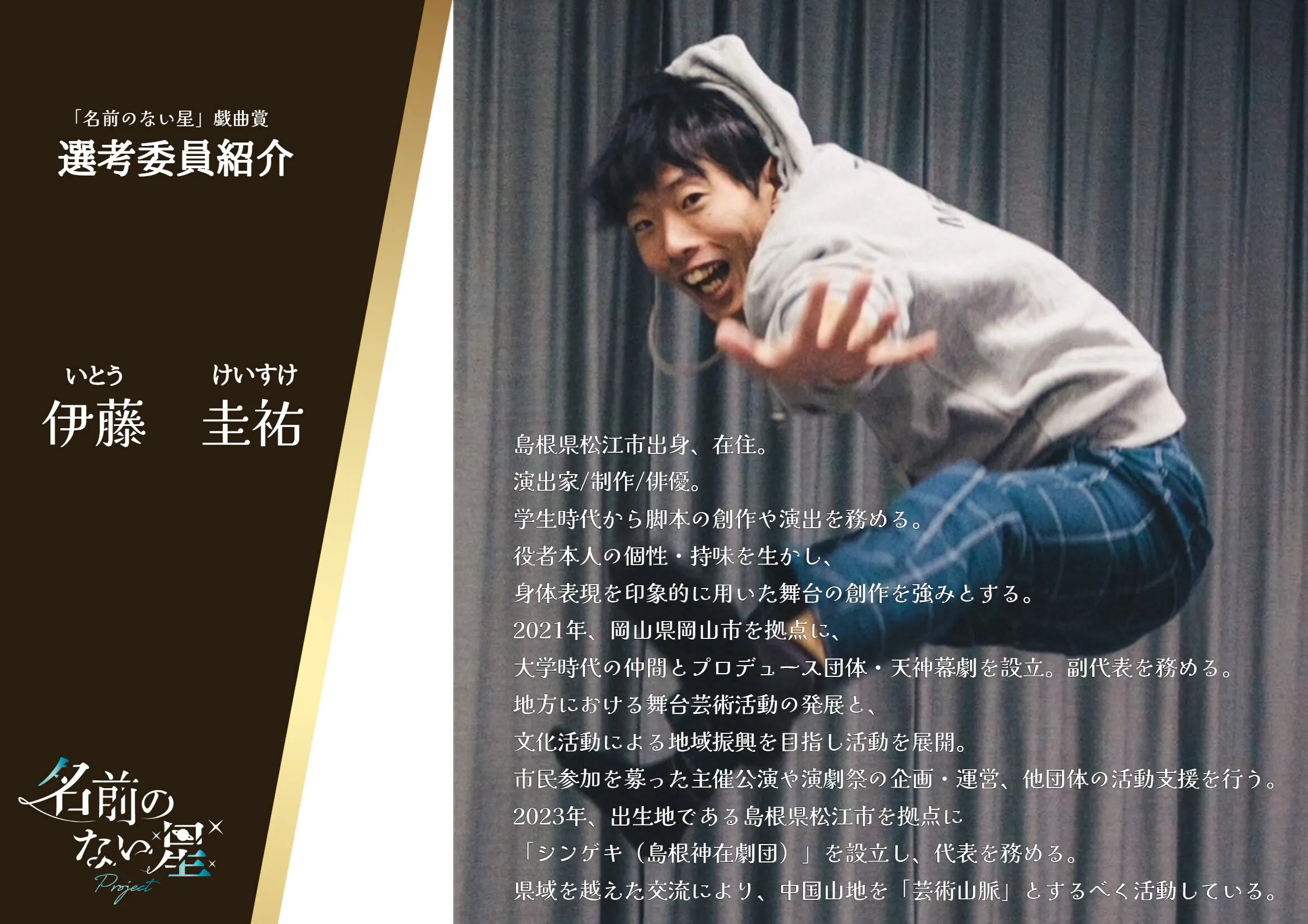 演劇業界が衰退していく中で「お金がなくても演劇をできる&観れる社会を作りたい」という想いを強くし、次世代に演劇をつなぐためのプロジェクト『名前のない星』を2024年1月1日に立ち上げました。