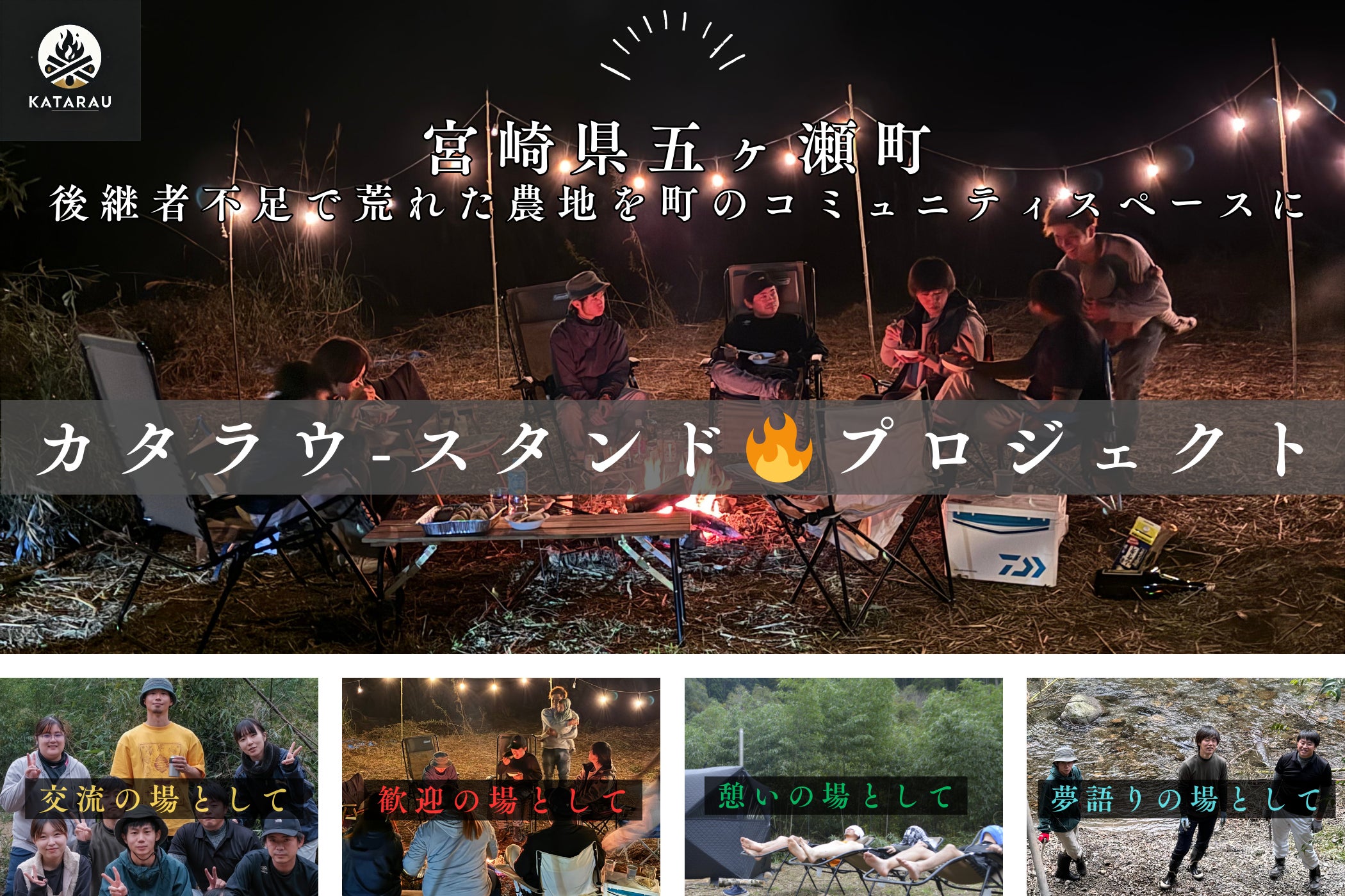 このプロジェクトでは、使われなくなった農地を、焚火を囲み語り合う「カタラウ-スタンド」というコミュニティスペースに生まれ変わらせることを目指しています。