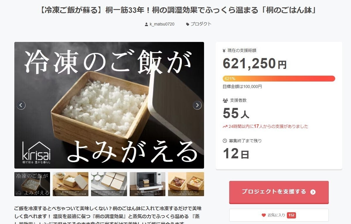 ▼「桐のレンジでごはん鉢」のプロジェクトページはこちら