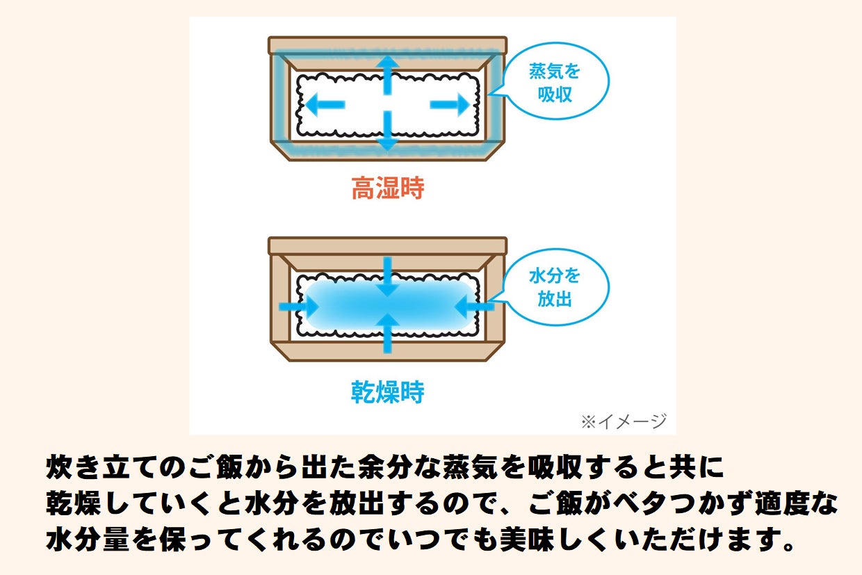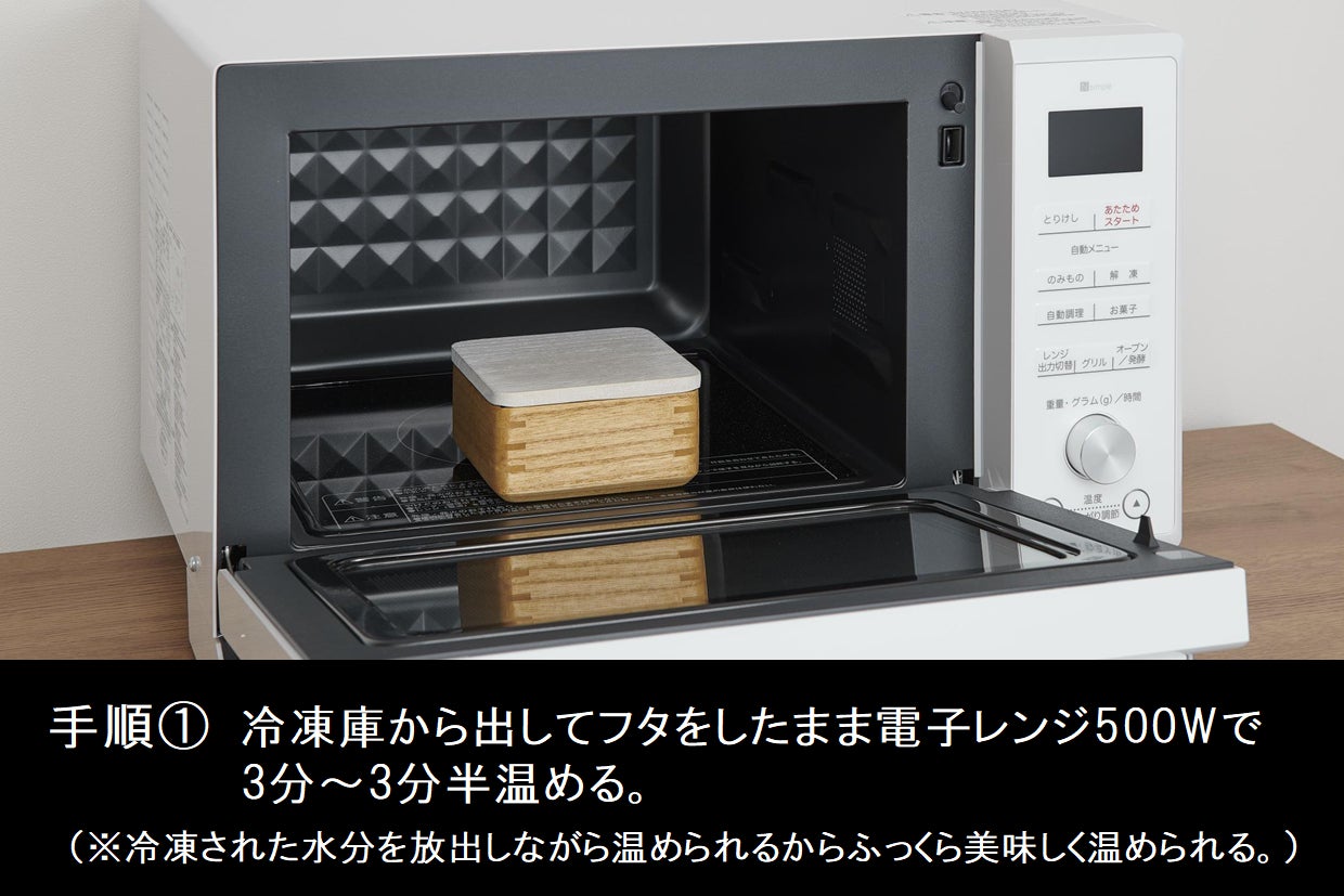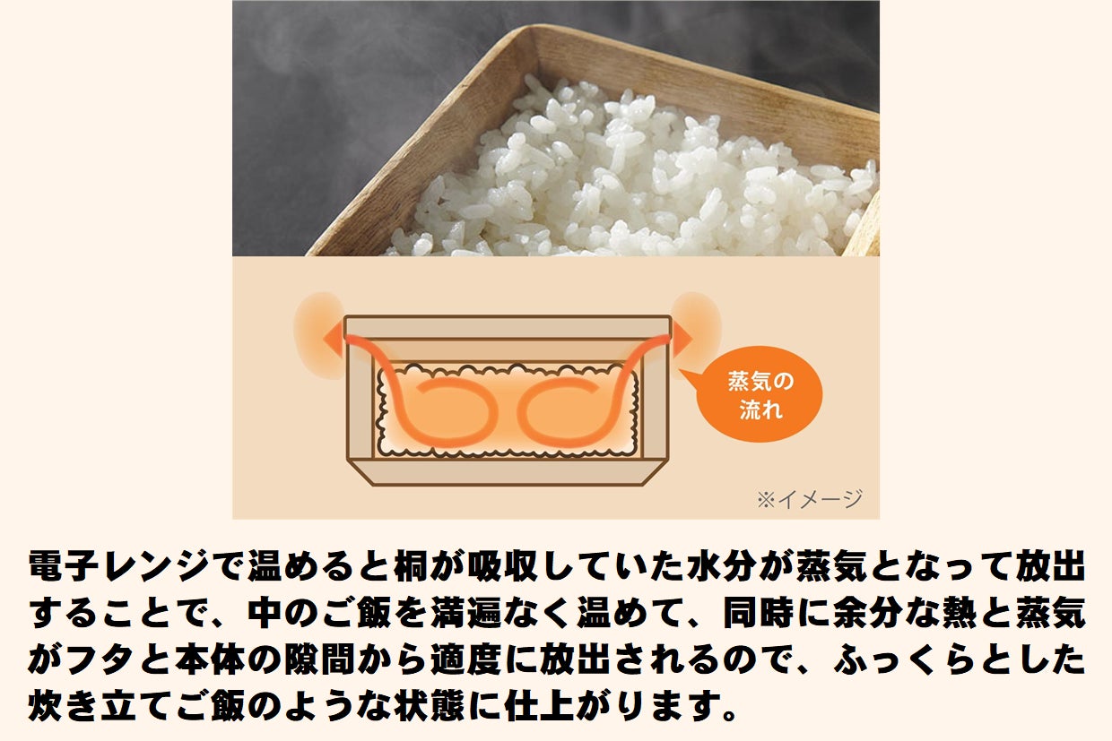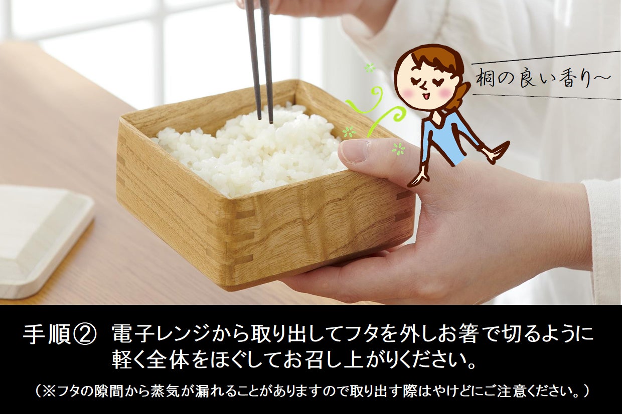 電子レンジを開けると、ご飯と桐の良い香りが広がります。桐の香りもお楽しみください。