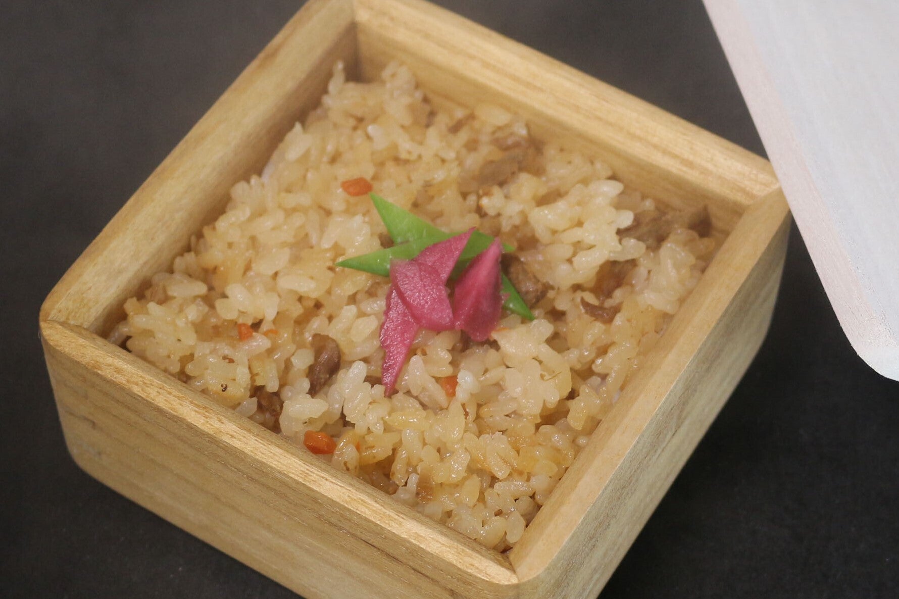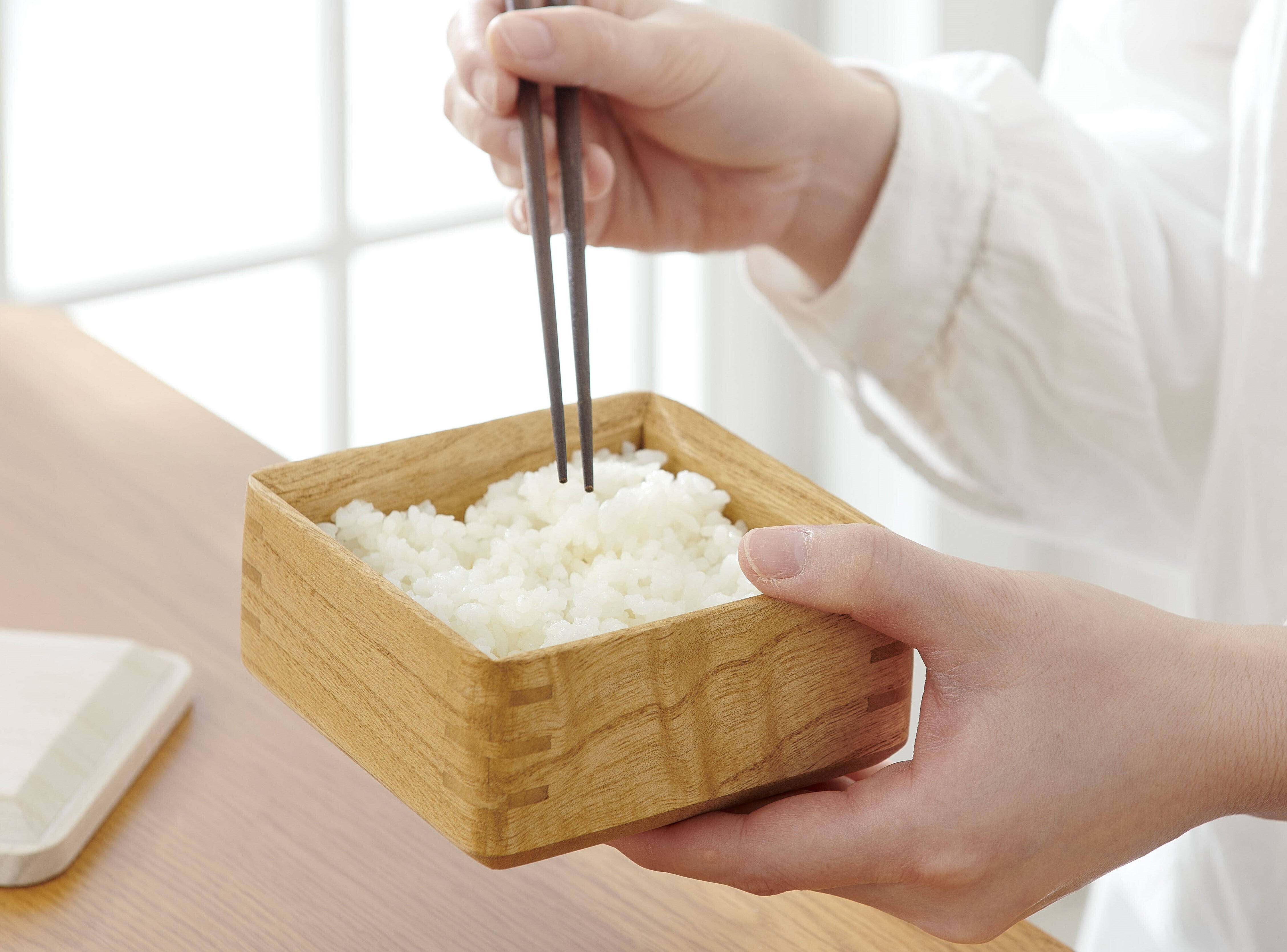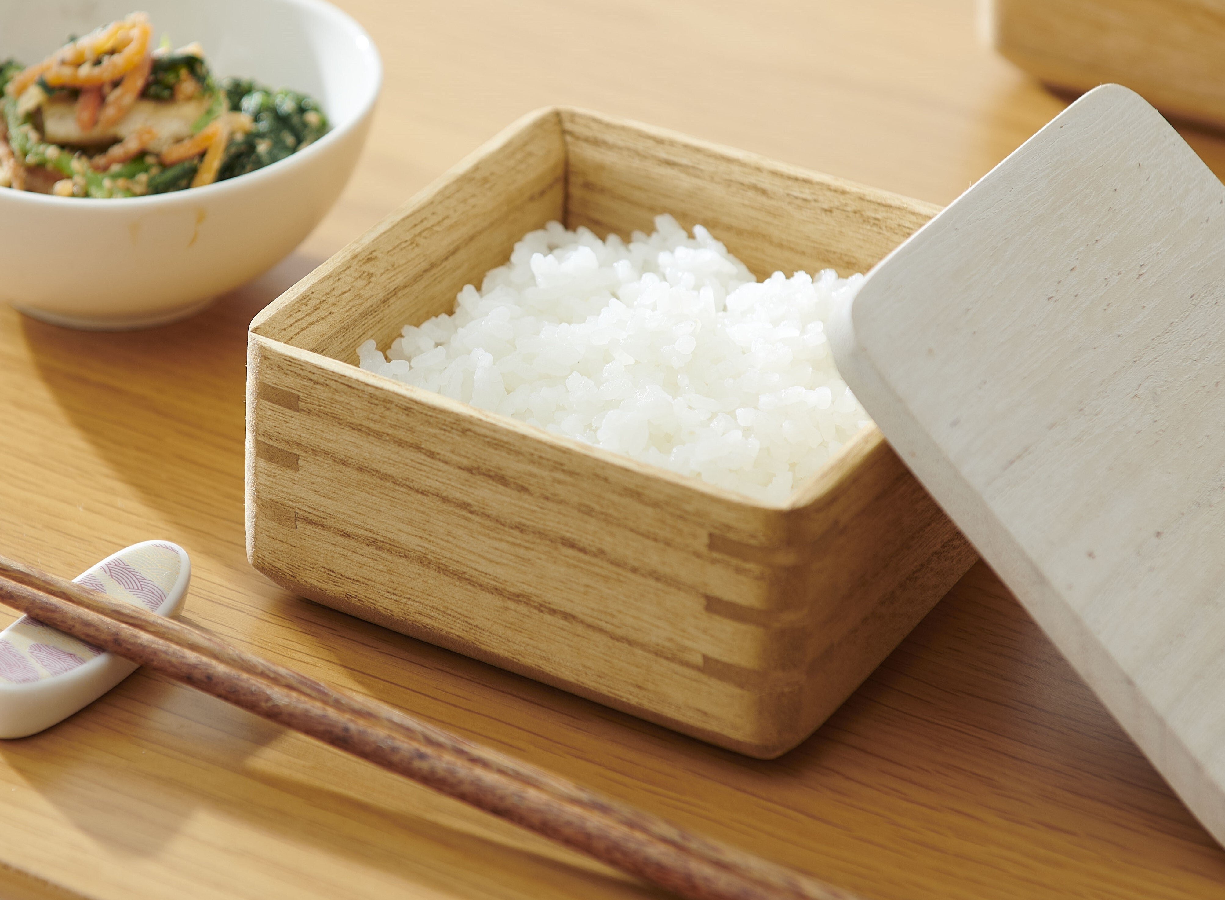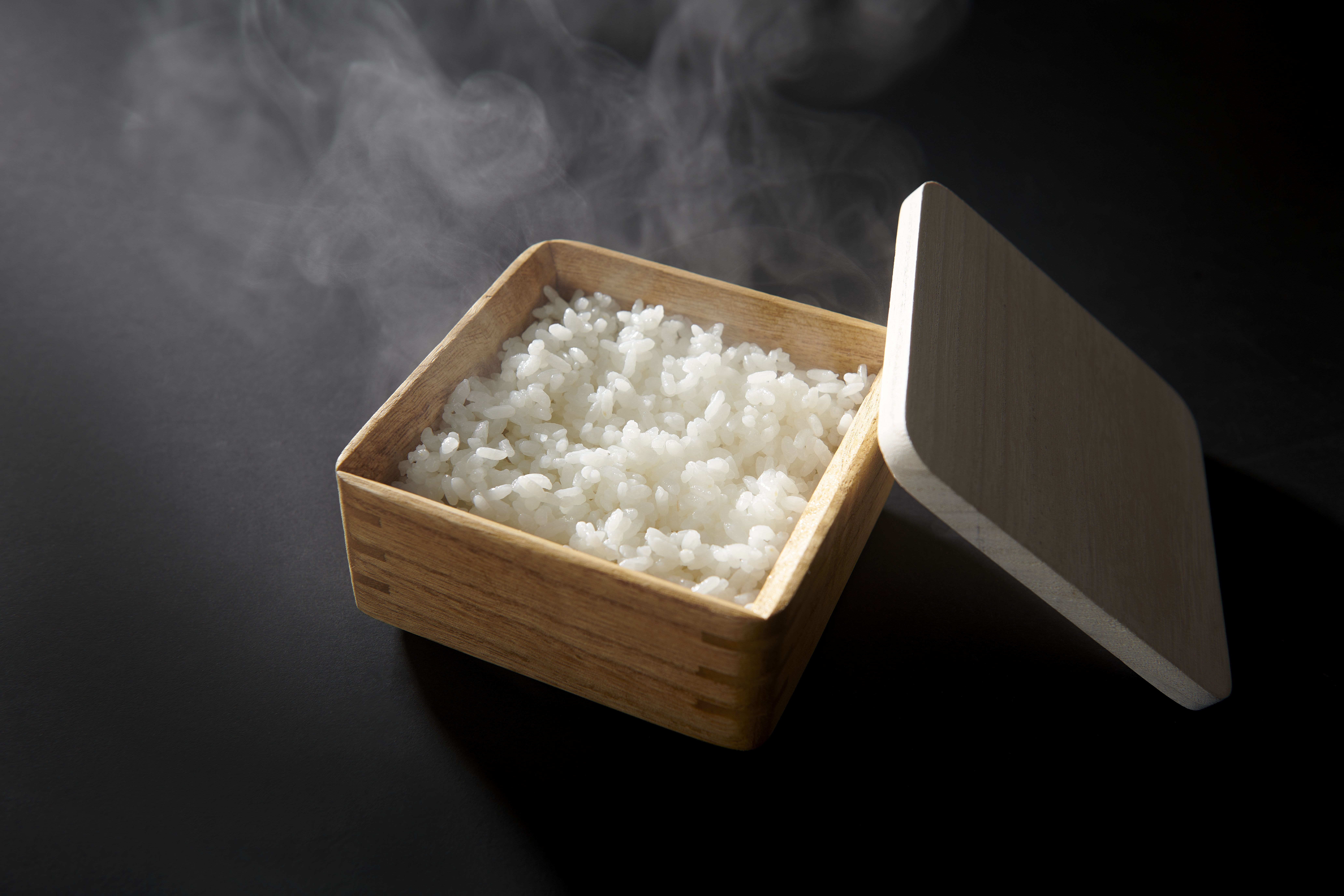 電子レンジを開けると、ご飯と桐の良い香りが広がります。桐の香りもお楽しみください。