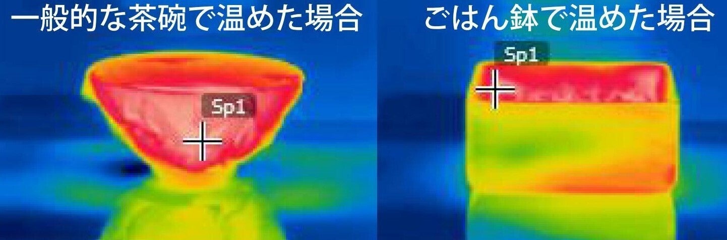陶器のお茶碗と桐のレンジでごはん鉢を比べたサーモグラフィカメラの画像がこちら!