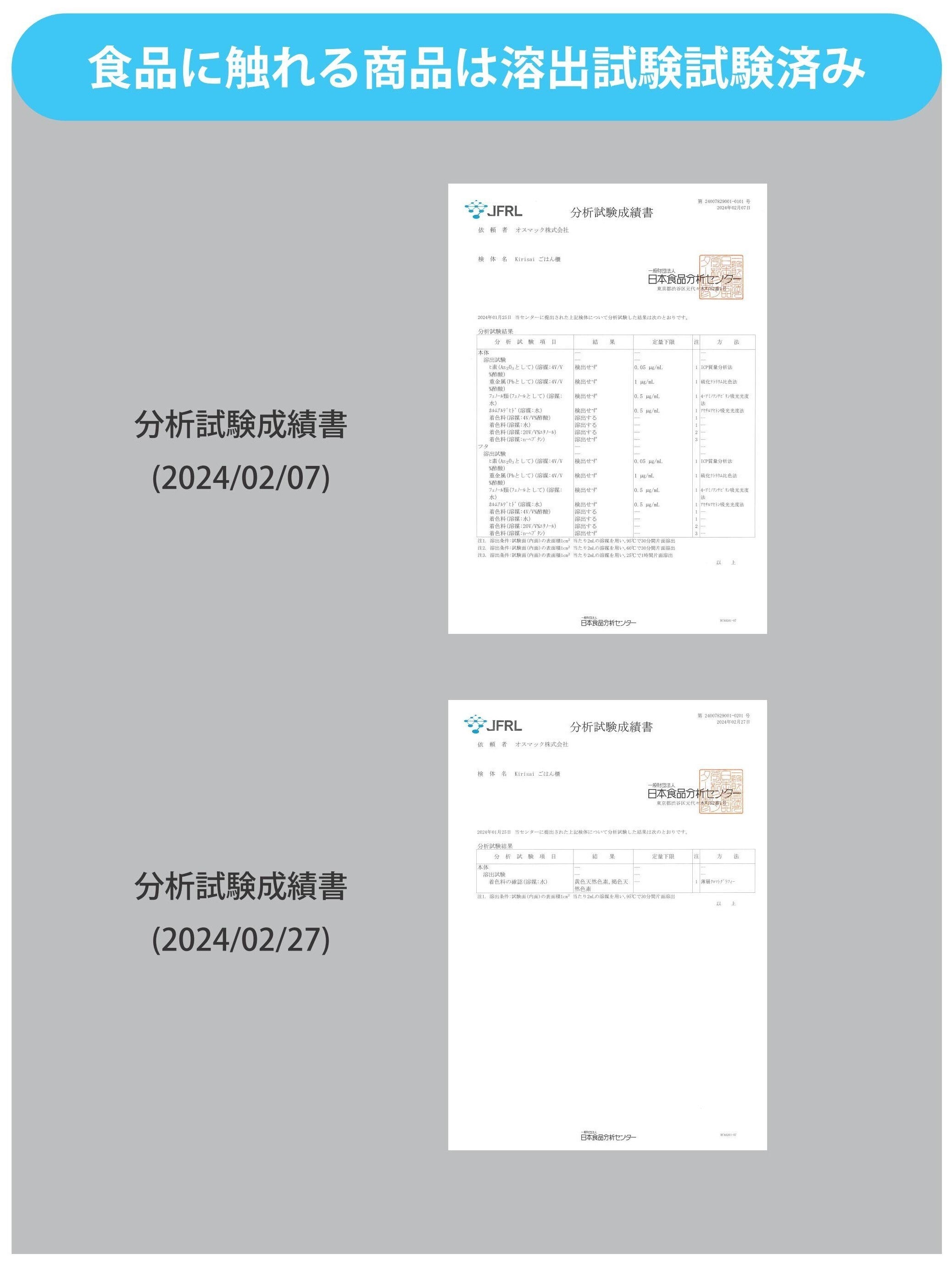 ■食品に触れる部分の溶出試験報告書