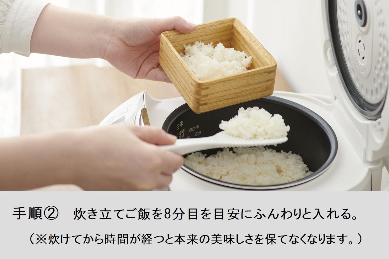 ※ご飯の量や電子レンジの性能に合わせて時間を調整してください。長時間の加熱のし過ぎは破損や事故につながる可能性がございますのでやめてください。