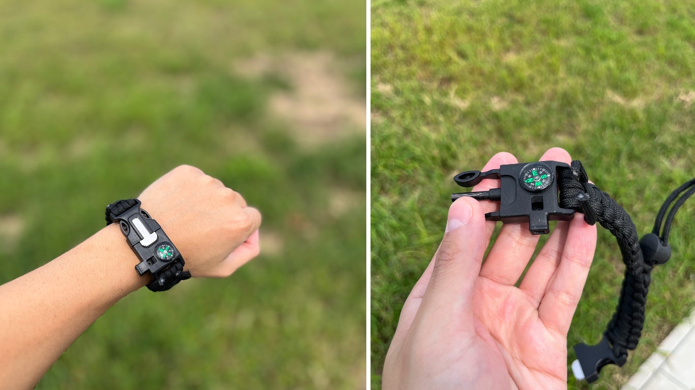 ①パラコード(全部をとくと、長さ3メートルの紐になる。)