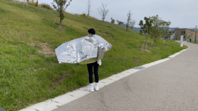 アルミ製の軽量、コンパクトサバイバルシートとしても使える。