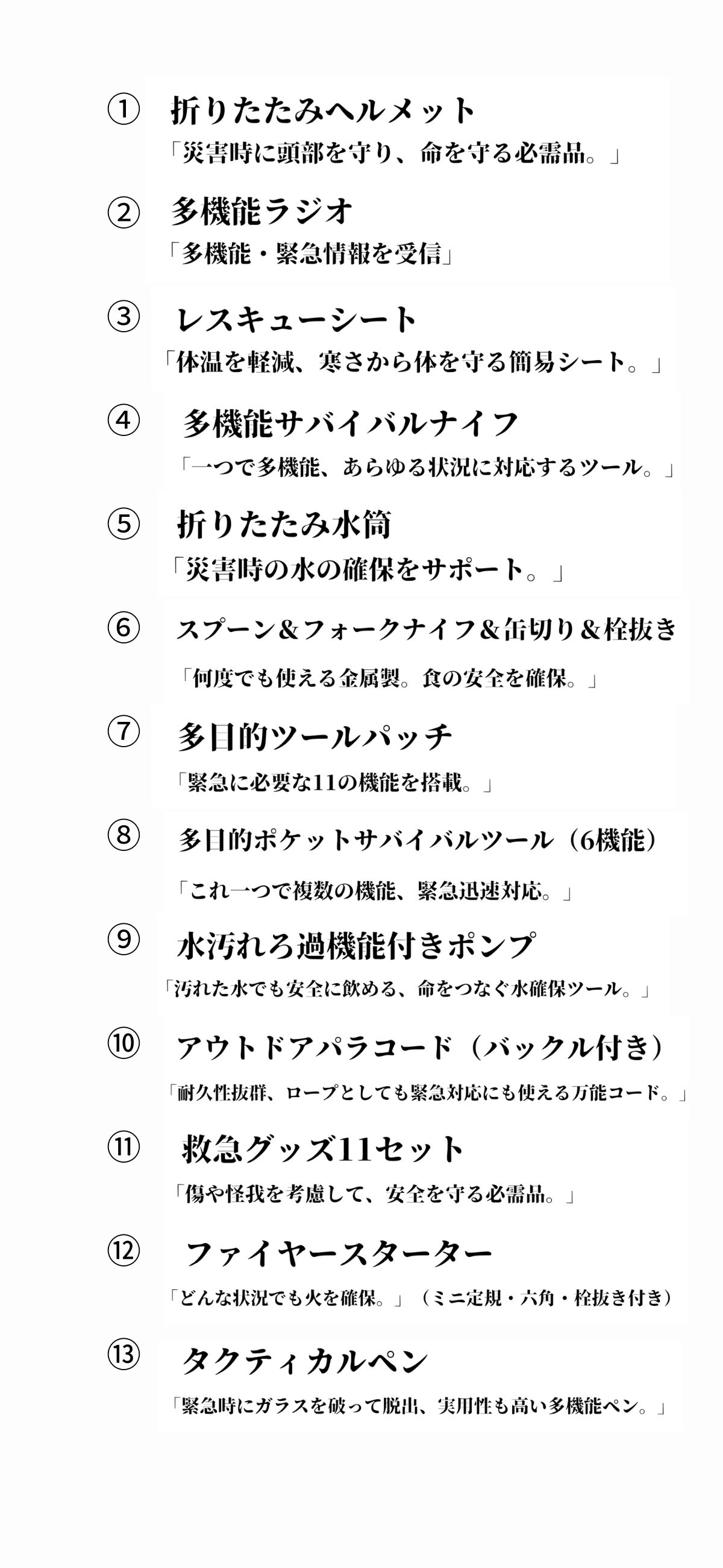 ・取扱説明書の有無:折りたたみヘルメット、多機能ラジオには日本語の説明書が付属しております。
