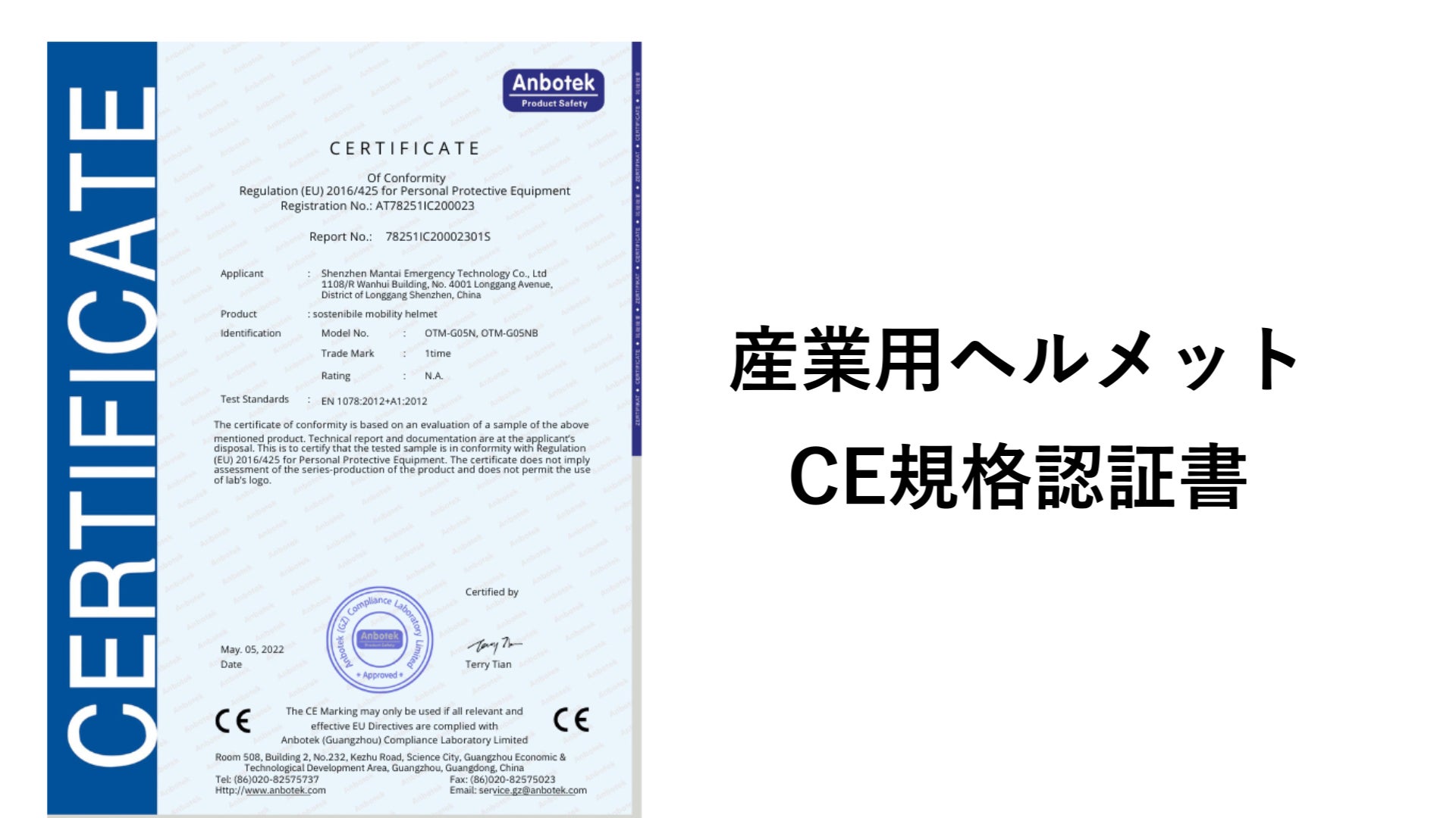(産業用のCE認証マーク(EN812)は、厚生労働省が定める「保護帽の規格」(飛来・落下物用)とは異なる認証規格です。)※このプロジェクトで取り扱うリターン品はOEM / ODM生産です。