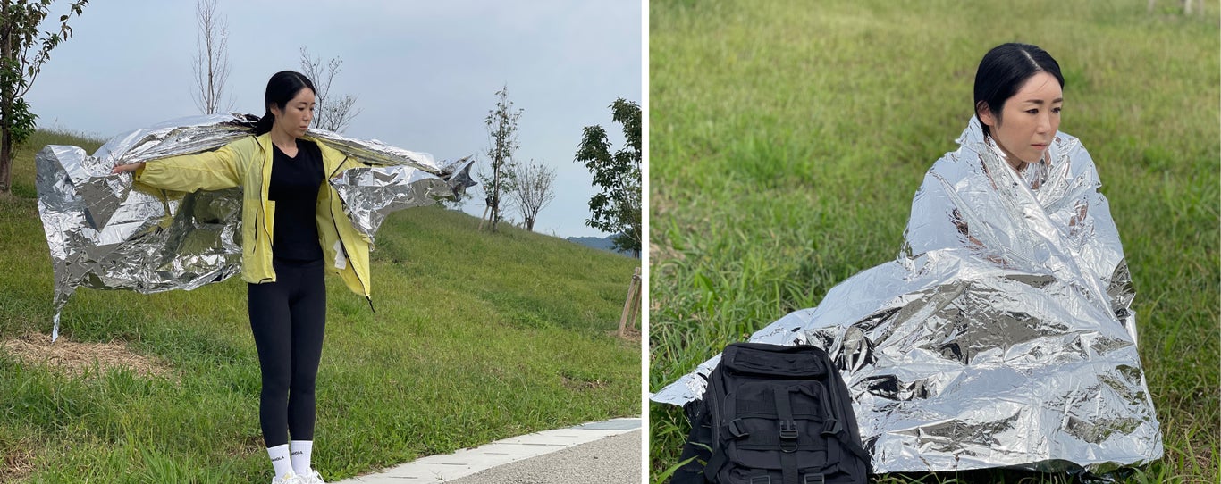 アルミ製の軽量、コンパクトサバイバルシートとしても使える。
