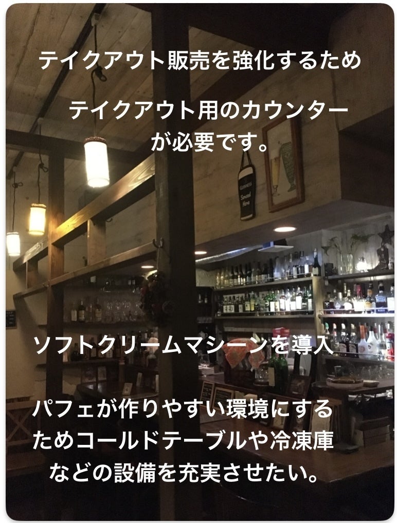 今回のプロジェクトでは、老朽化している店舗設備を新しくして、テイクアウト主体のカフェとしてリニュアルさらなるステップアップを図り、秋田を元気付けれるようなスイーツを提供したいと考えています。