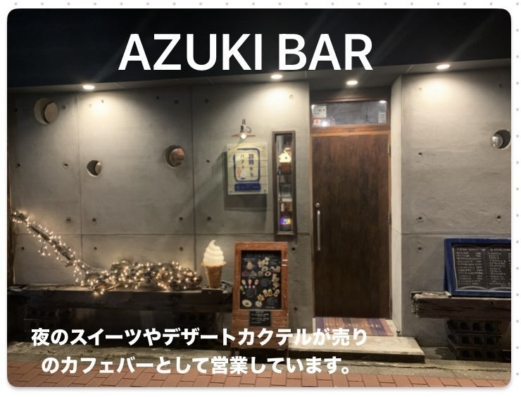 9年前に全面改装しAZUKI BARとしてリニュアル、夜のスイーツやデザートカクテルを売りに営業を続けています。
