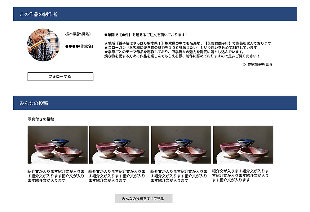 商品を見てから作り手に興味を持つ、ではなくて、作り手の人柄を知ってもらって、その方に会いたくなるようなストーリーを読んでもらって、どんなものを作っているのだろう、ぜひファンになってもらってから、その順番で商品を見て購入して欲しい。大量生産にはない、商品ひとつひとつにあるドラマを感じて購入して欲しい。