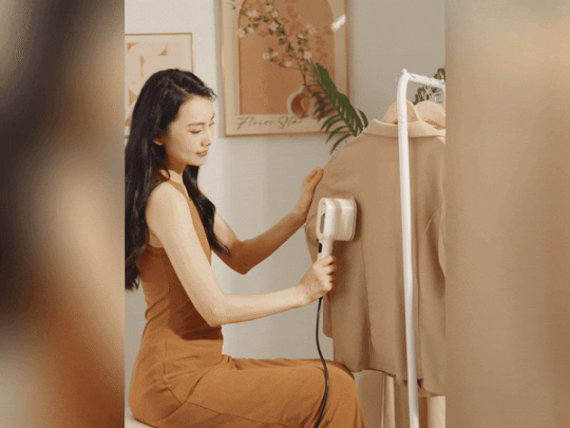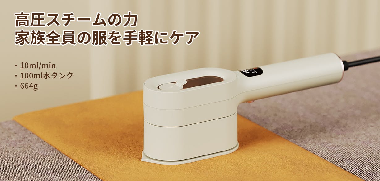 小型ですが、100mlの水タンクを内蔵しています。最大12分間の連続使用が可能で、家族全員の衣類をまとめてケアでき、忙しい日常でも手軽にアイロンがけができます。