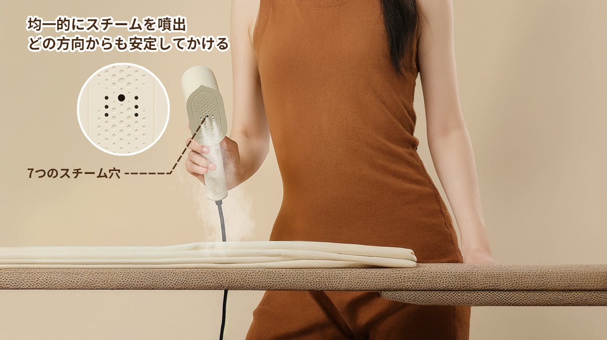 7つのスチーム穴がアイロン面に設計され、スチームを均一に噴出でき、効果的にシワを伸ばします。