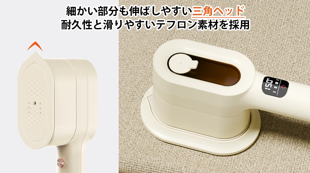 三角ヘッド仕様により、ワイシャツの襟やボタン周り、ズボンの折り目など細かい部分にもアイロン掛けが可能です。
