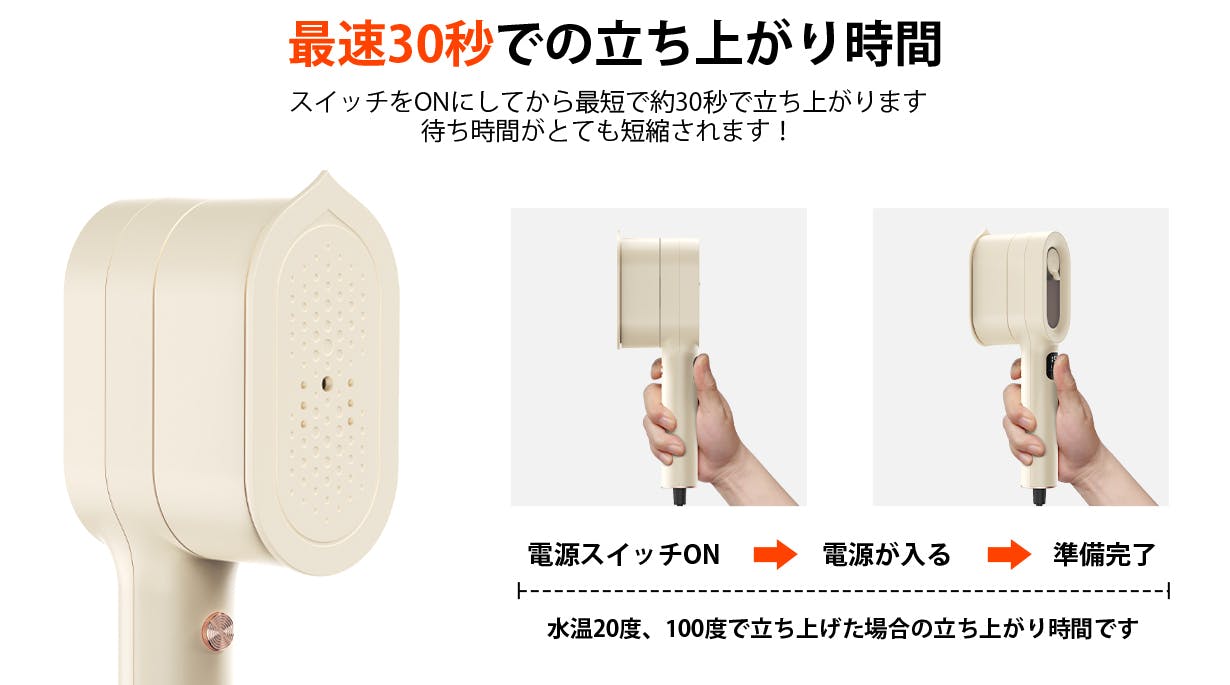 スイッチを入れてからわずか30秒で立ち上がります。お忙しい朝でもすばやく使えて、身だしなみを整えてくれる強い味方です!