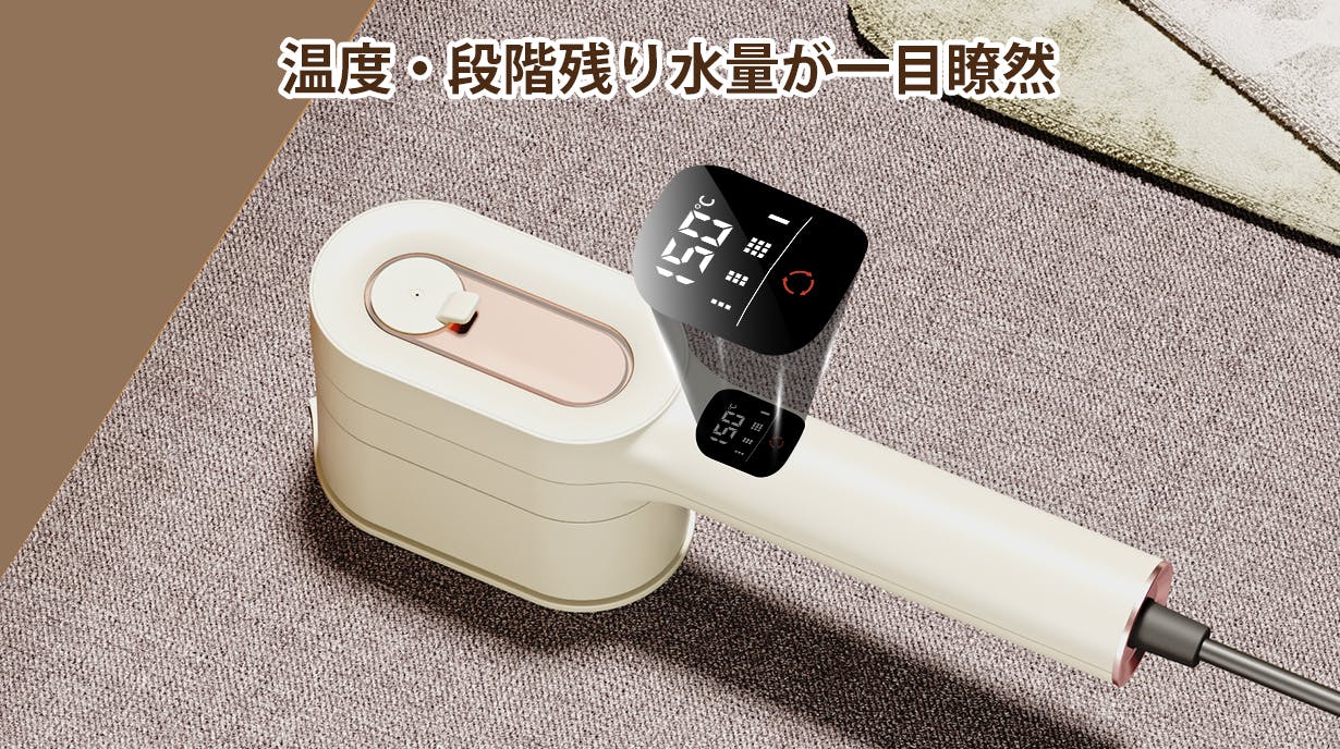 LEDディスプレイを搭載して、温度・スチーム段階が表示されます。水タンクは透明な素材を採用しているため、残り水量が一目瞭然。