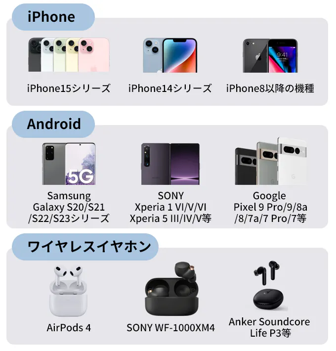 本製品は、Qi(チー)規格対応のワイヤレス充電機能を搭載しており、対応デバイスを置くだけで充電が可能です。5Wから15Wまでの出力に対応しており、スマートフォンだけでなく、ワイヤレスイヤホンなどのデバイスも手軽に充電できます。