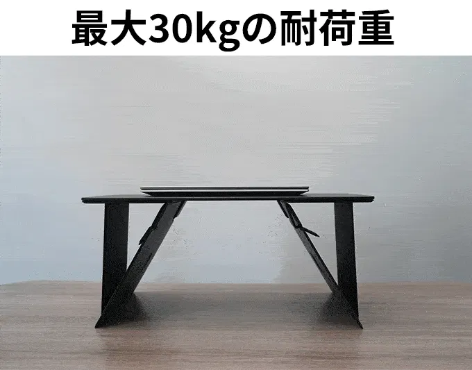 本製品は、軽量かつ高密度なボード素材と三角形の安定構造を採用し、最大30kgの耐荷重を実現しています。10冊ほどの書籍を置いても安定して使用できます。