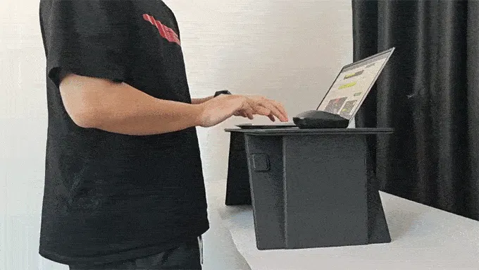 長時間の座り作業に疲れたときには、折りたたみテーブルを立ててスタンディングデスクとしても使用可能。姿勢改善や肩こり・首の負担軽減に役立ち、健康的な働き方をサポートします。