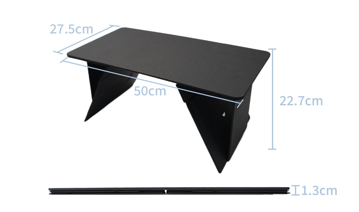 この小型テーブルは、車内でも使いやすいです。座席に座った状態で膝の上に置くだけで、どこでも簡単に安定した作業スペースが確保できます。また、折りたたみ式なので、使わないときはサッと片付けられるため、車内での持ち運びや収納にも便利です。